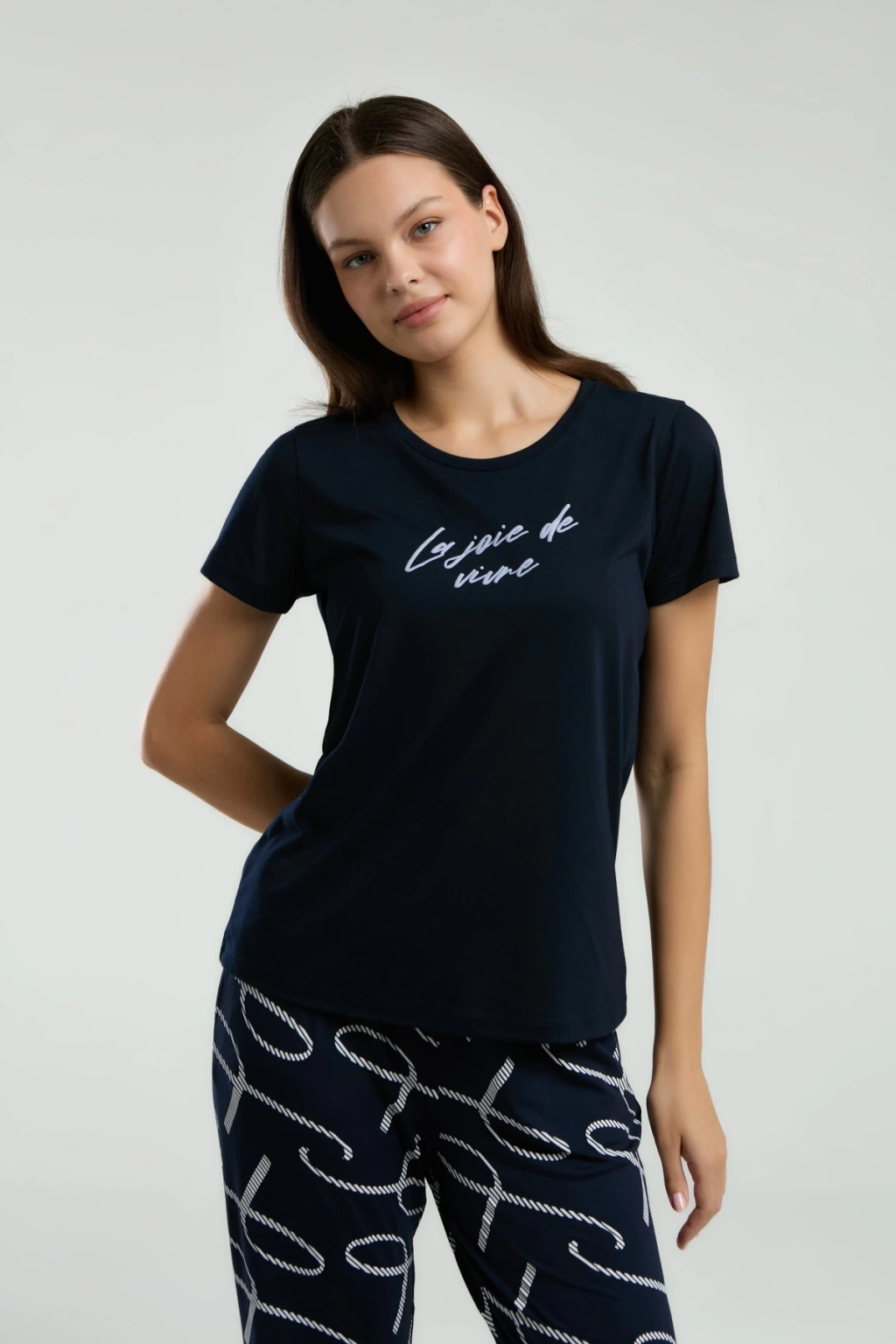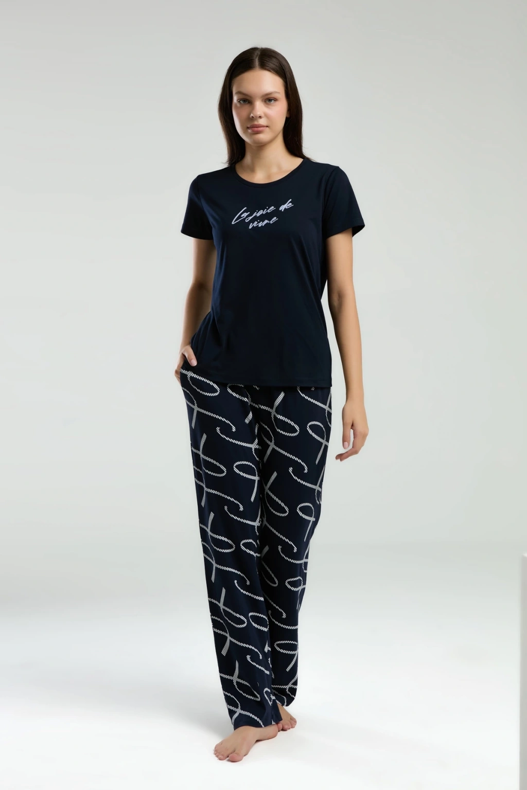 Pjs 28039 Kadın Uzun Kol Boydan Düğmeli Desenli Pijama Takımı
