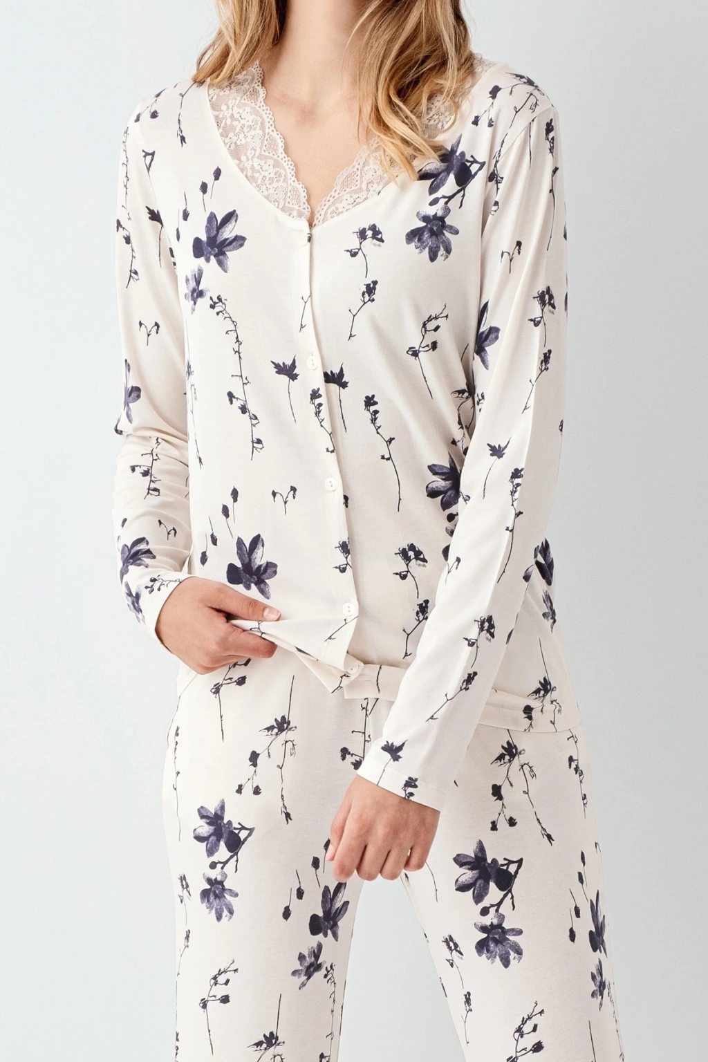 Pjs 28039 Kadın Uzun Kol Boydan Düğmeli Desenli Pijama Takımı