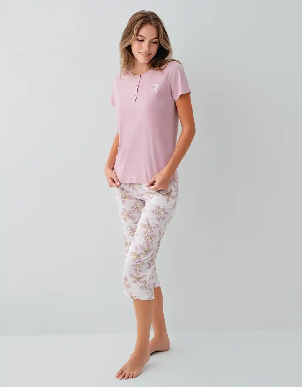 Pjs 29068 Kadın Kısa Kollu Düğmeli Pijama Takım