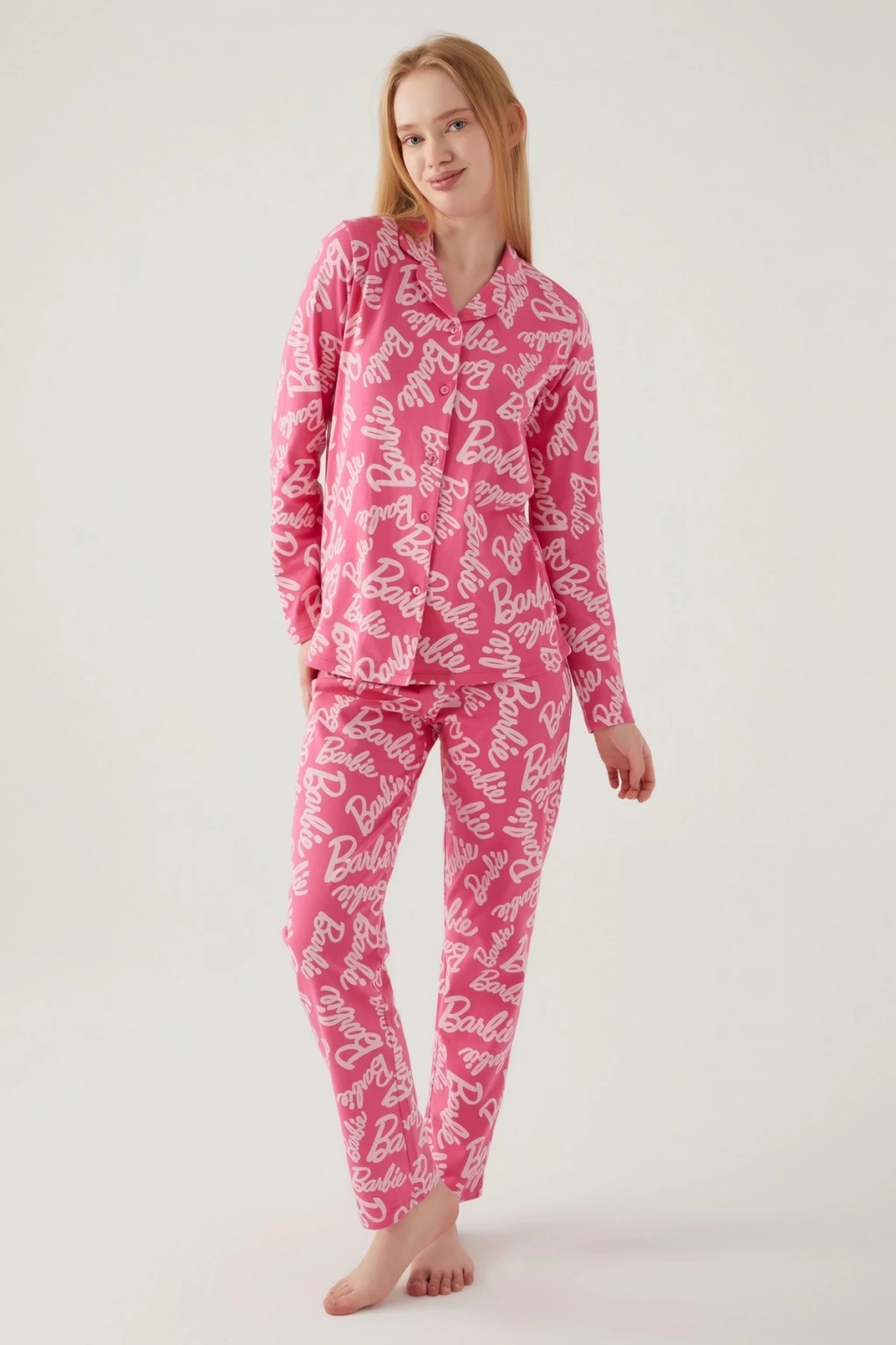 Barbie 1767-S Kadın Gömlek Yaka Pijama Takımı