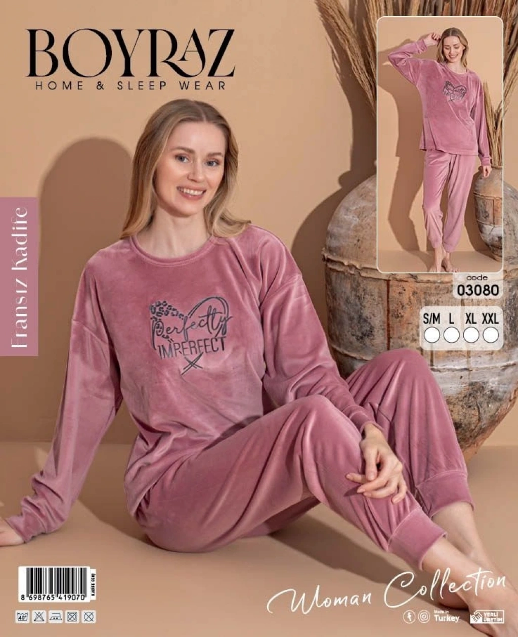 Boyraz 03080 Fransız Kadife Kumaş Uzun Kol Pijama Takımı