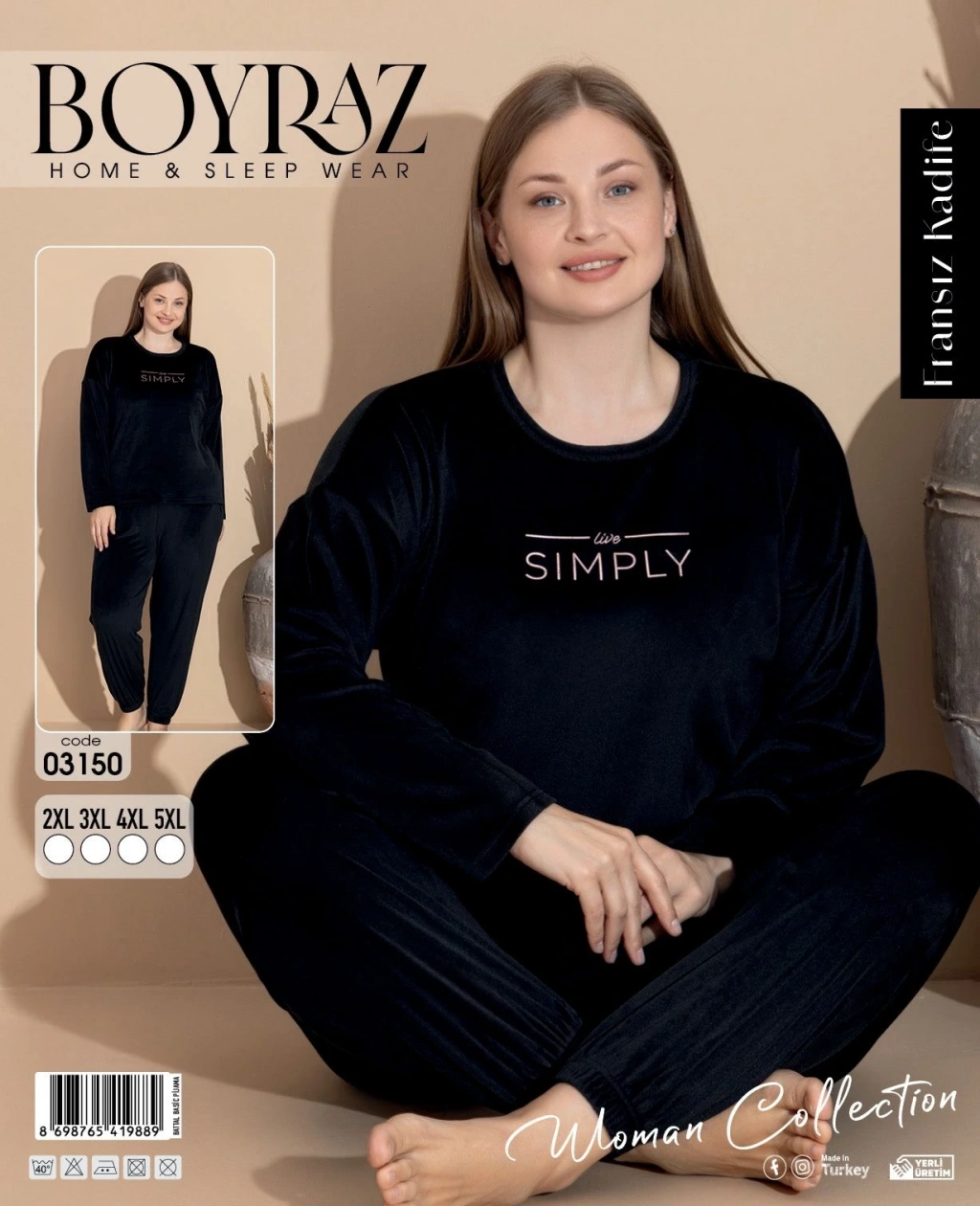 Boyraz 03096 Fransız Kadife Kumaş Uzun Kol Pijama Takımı