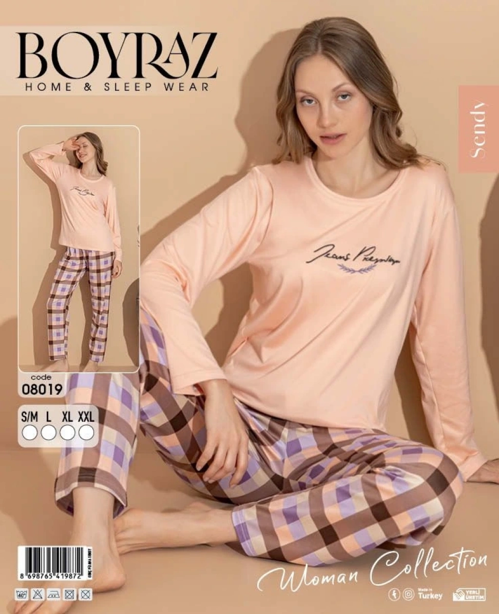 Boyraz 08019 Kadın Sendy Kumaş Uzun Kol Pijama Takımı