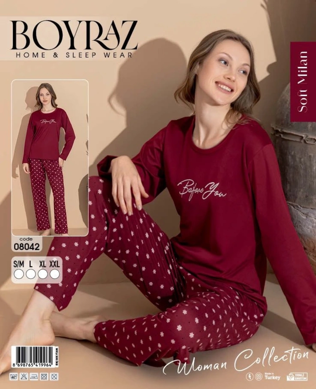 Boyraz 08042 Soft Milan Kumaş Uzun Kol Pijama Takımı