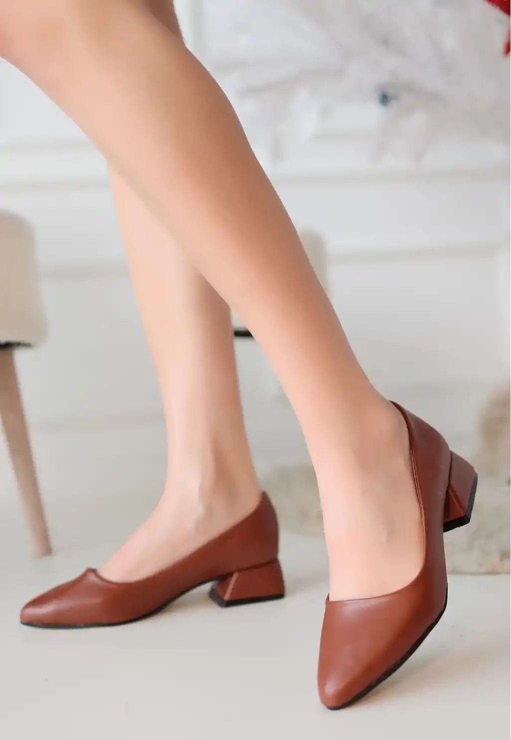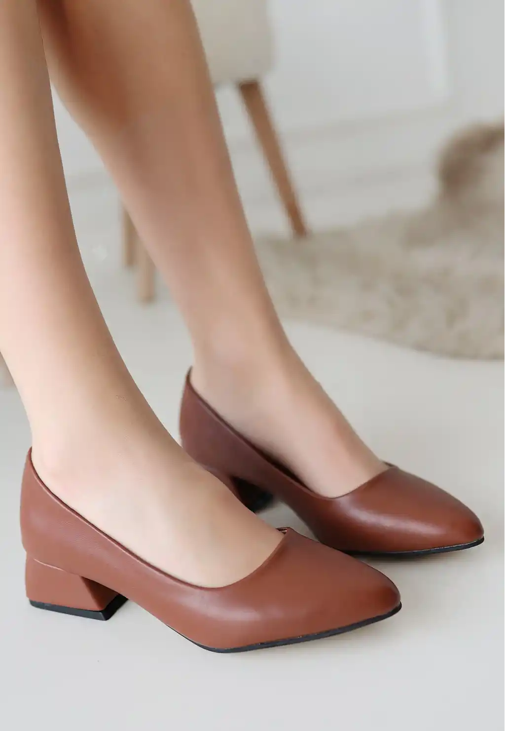 Desniy Taba Cilt Topuklu Ayakkabı