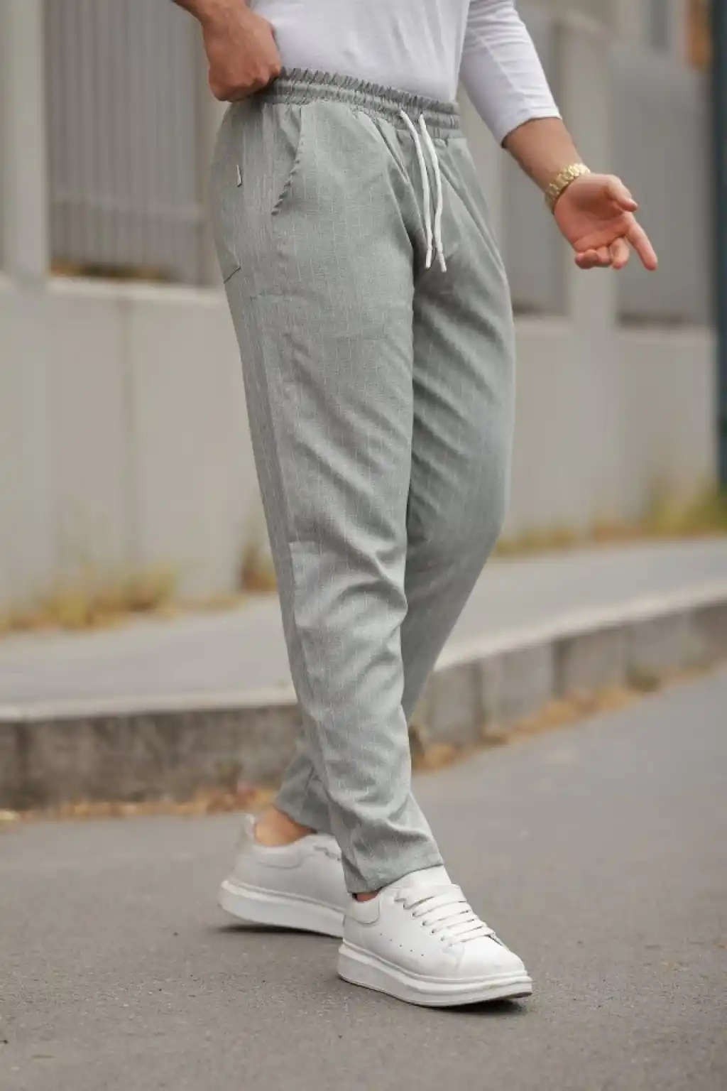 Erkek Beli Bağcıklı çizgili Pantolon