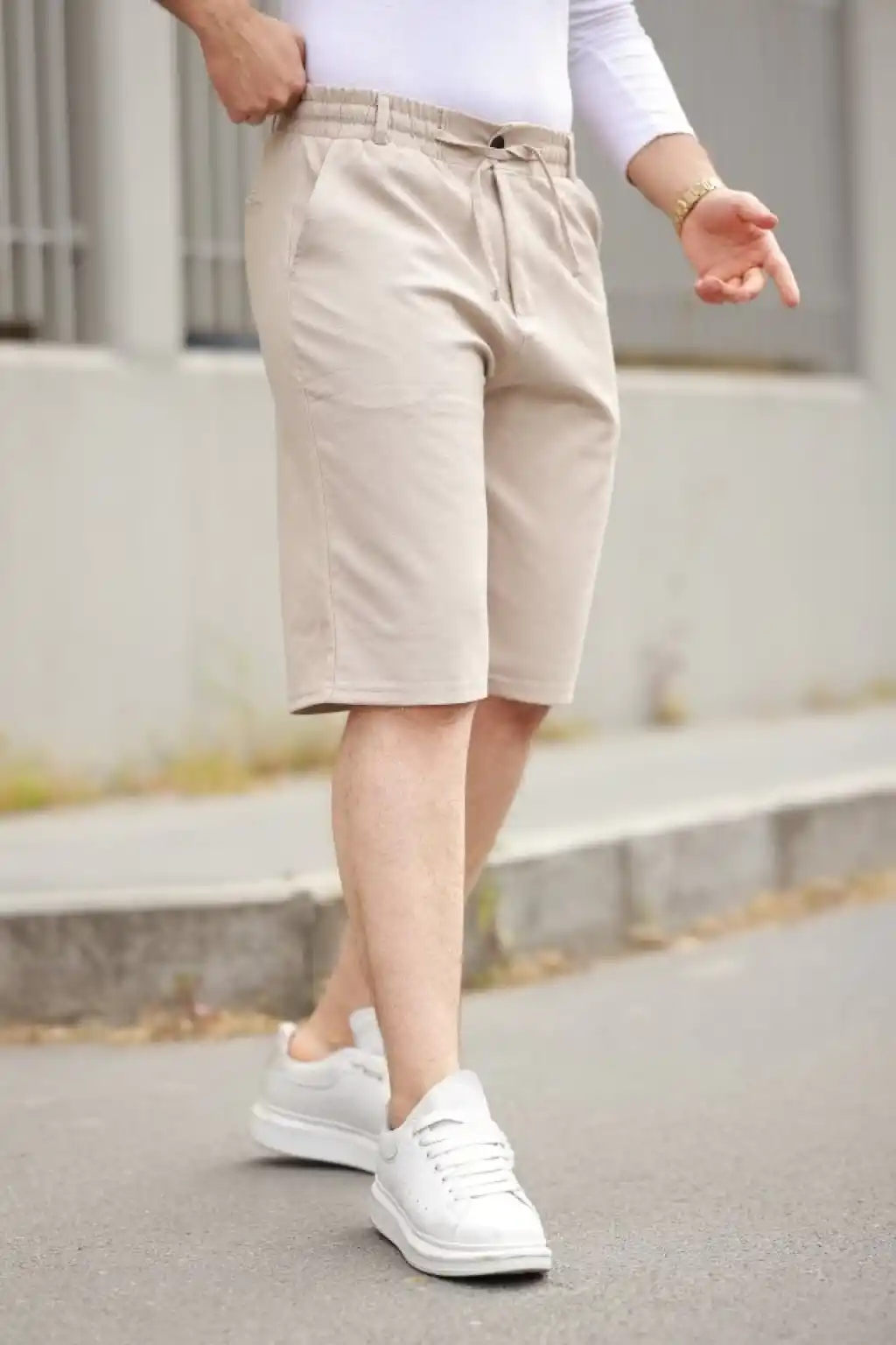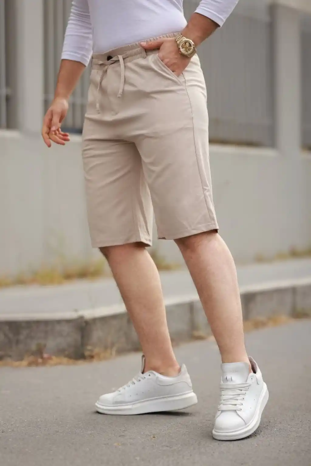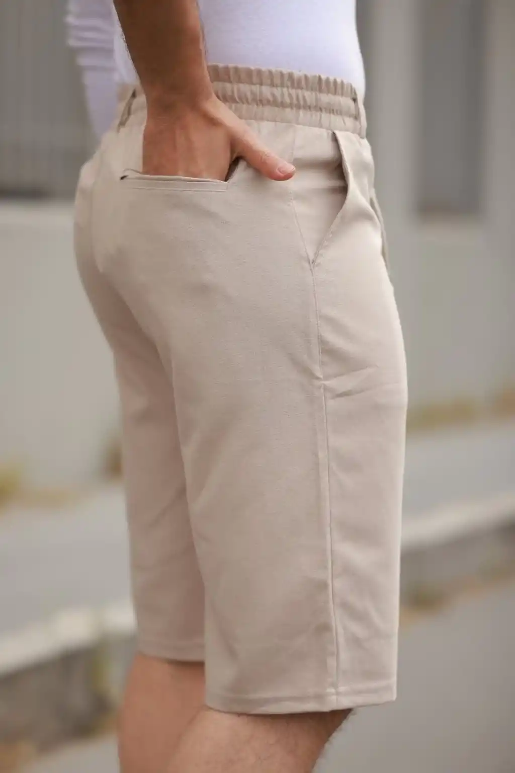 Erkek Beli Bağcıklı Ve Düğmeli Bezayağı Kumaş şort