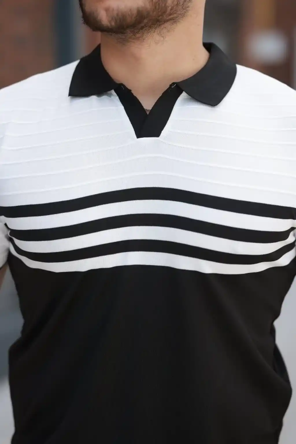 Erkek Dikey Kabartmalı Örgü Dokulu Fermuar Yakalı Tişört