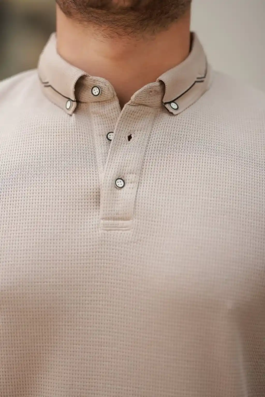 Erkek Düğmeli Yaka Waffle Kumaş Kısa Kollu Tişört