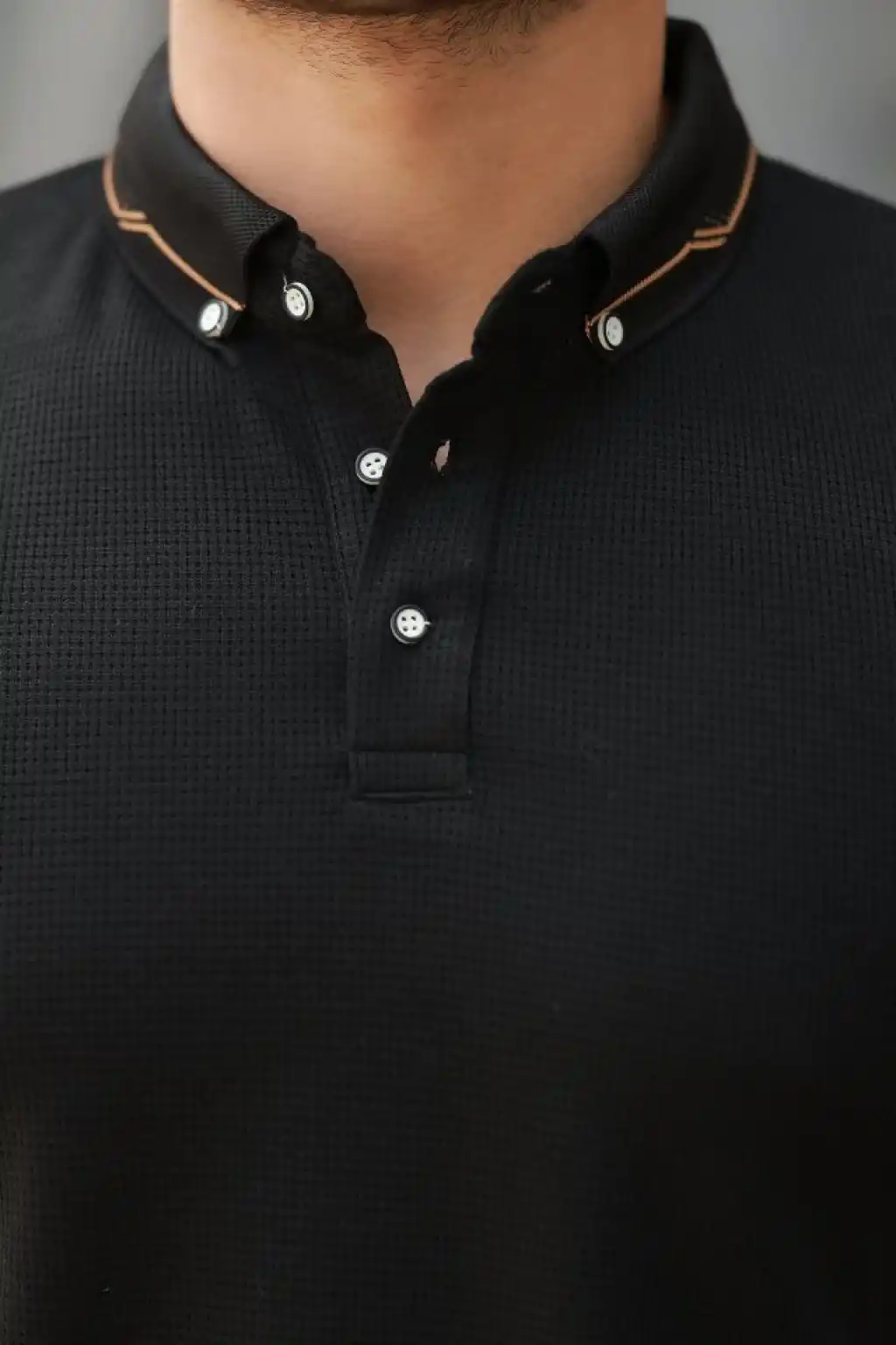 Erkek Düğme Yakalı Jakar Kumaş Kısa Kollu Tişört
