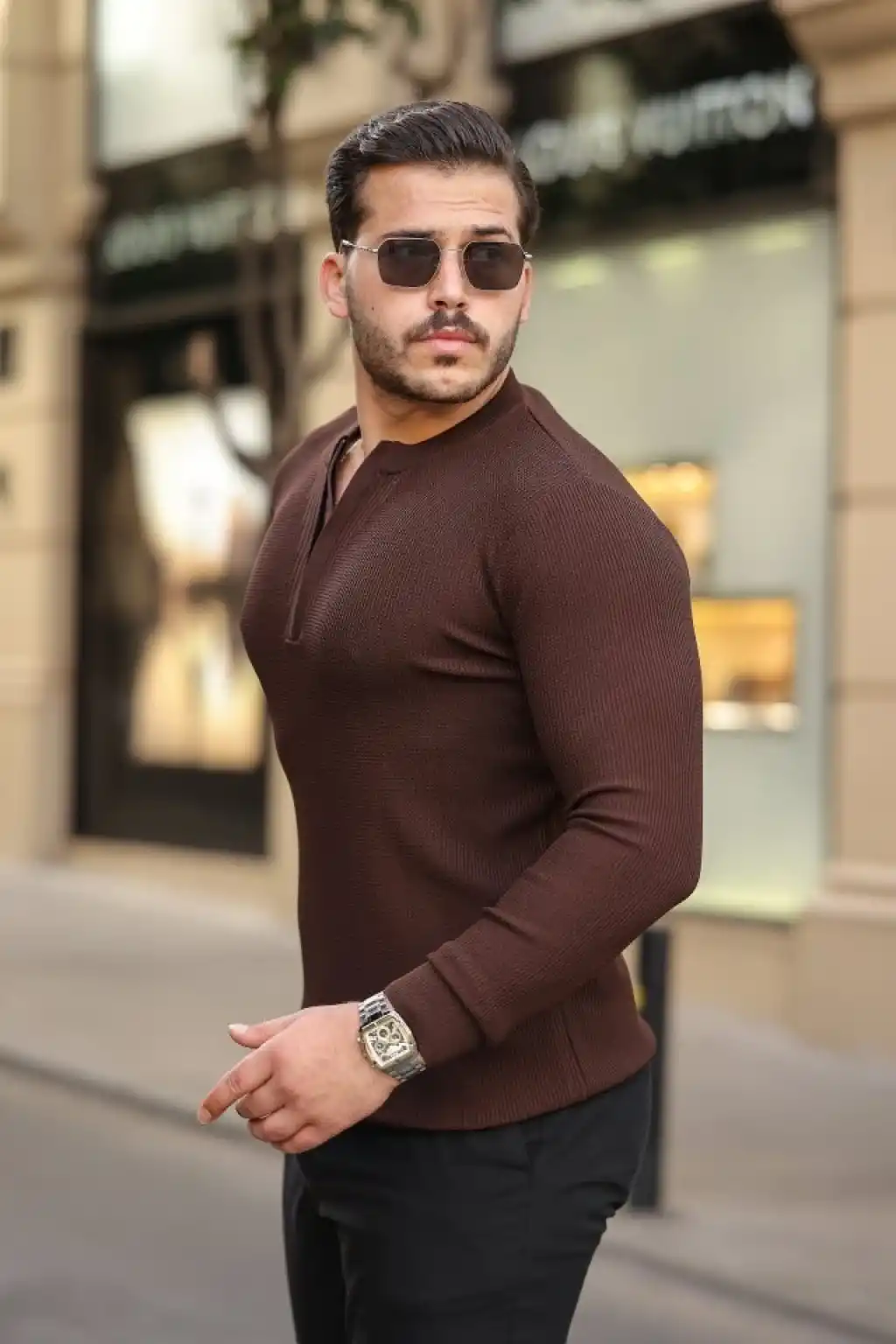 Erkek Kol Ve Yaka Detaylı Uzun Kollu Triko