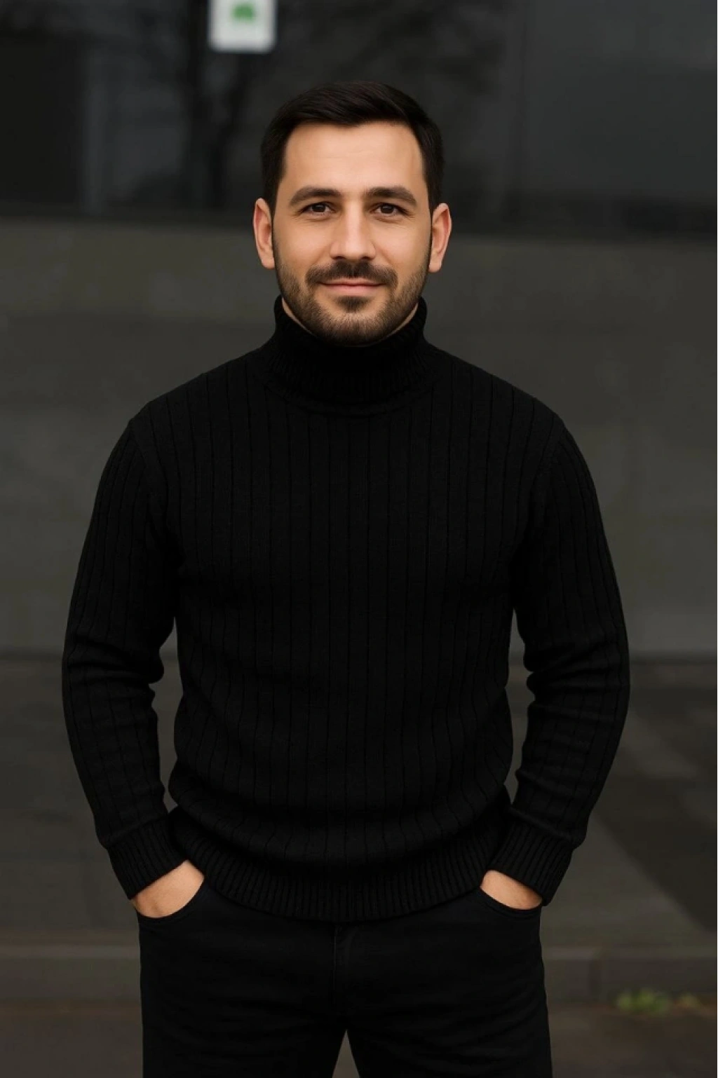 Erkek Yarım Boğaz Triko Kazak Yumuşak Dokulu Pamuklu Ince Dokuma, Uzun Kollu Rahat Regular Kalıp - Siyah