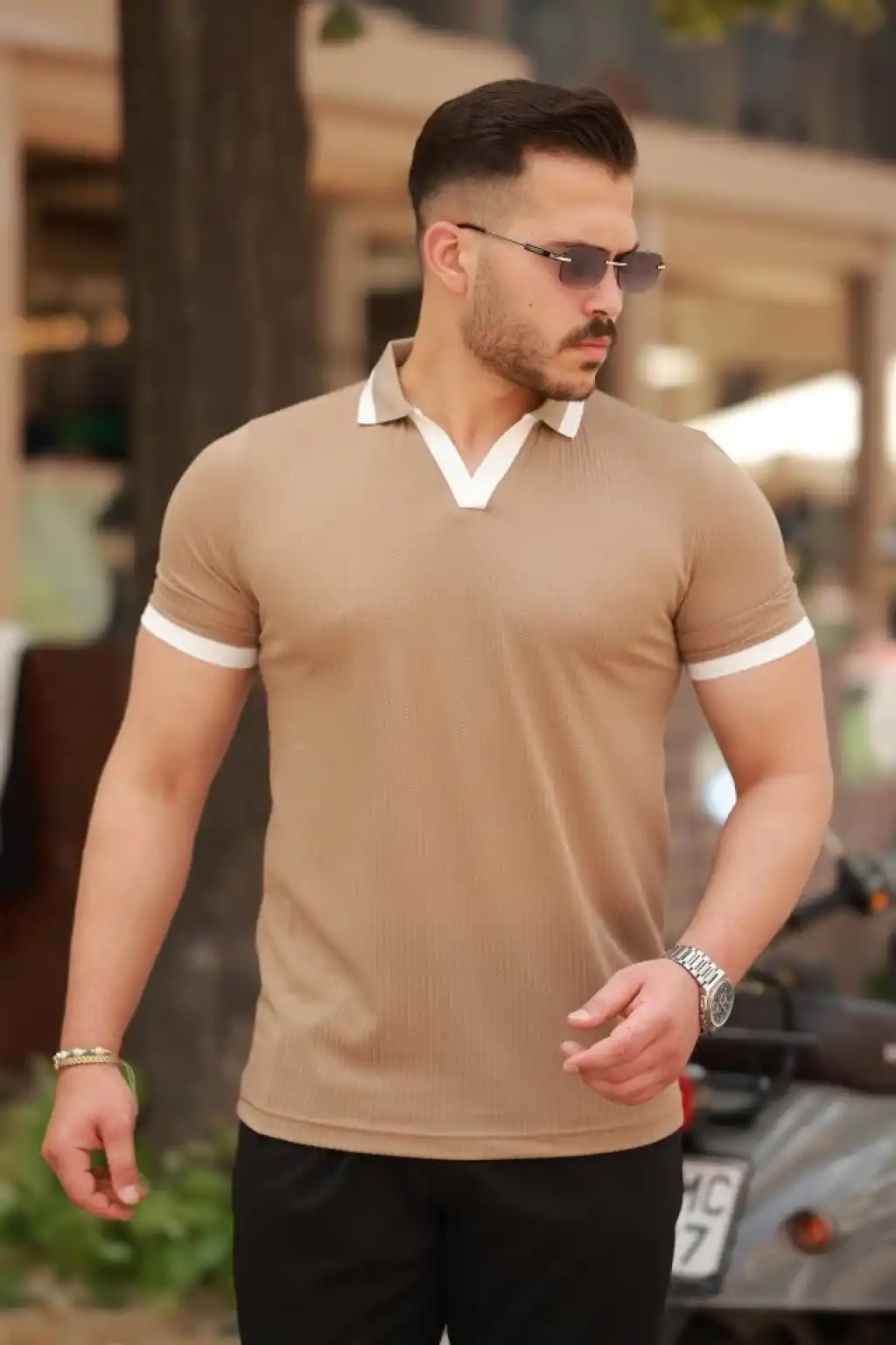 Erkek Düğme Yakalı Jakar Kumaş Kısa Kollu Tişört