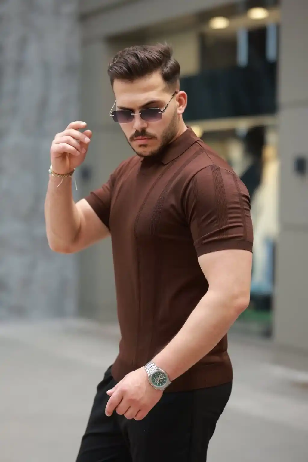 Erkek Düğme Yakalı Jakar Kumaş Kısa Kollu Tişört