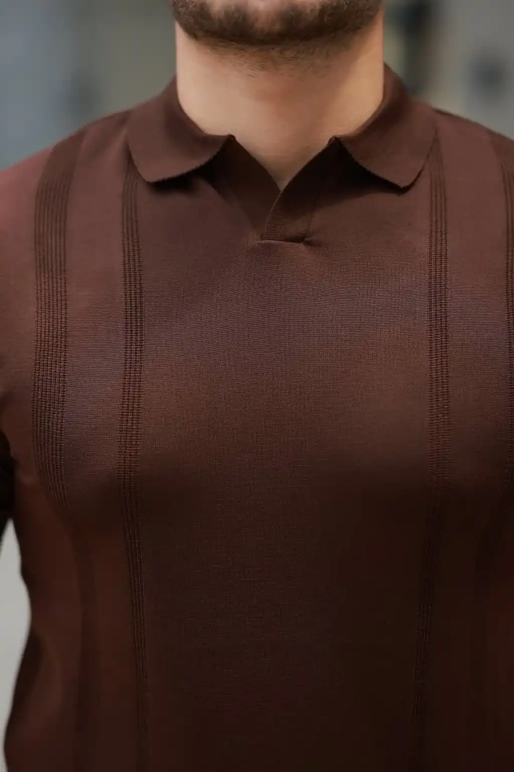 Erkek Dikey Kabartmalı Örgü Dokulu Fermuar Yakalı Tişört