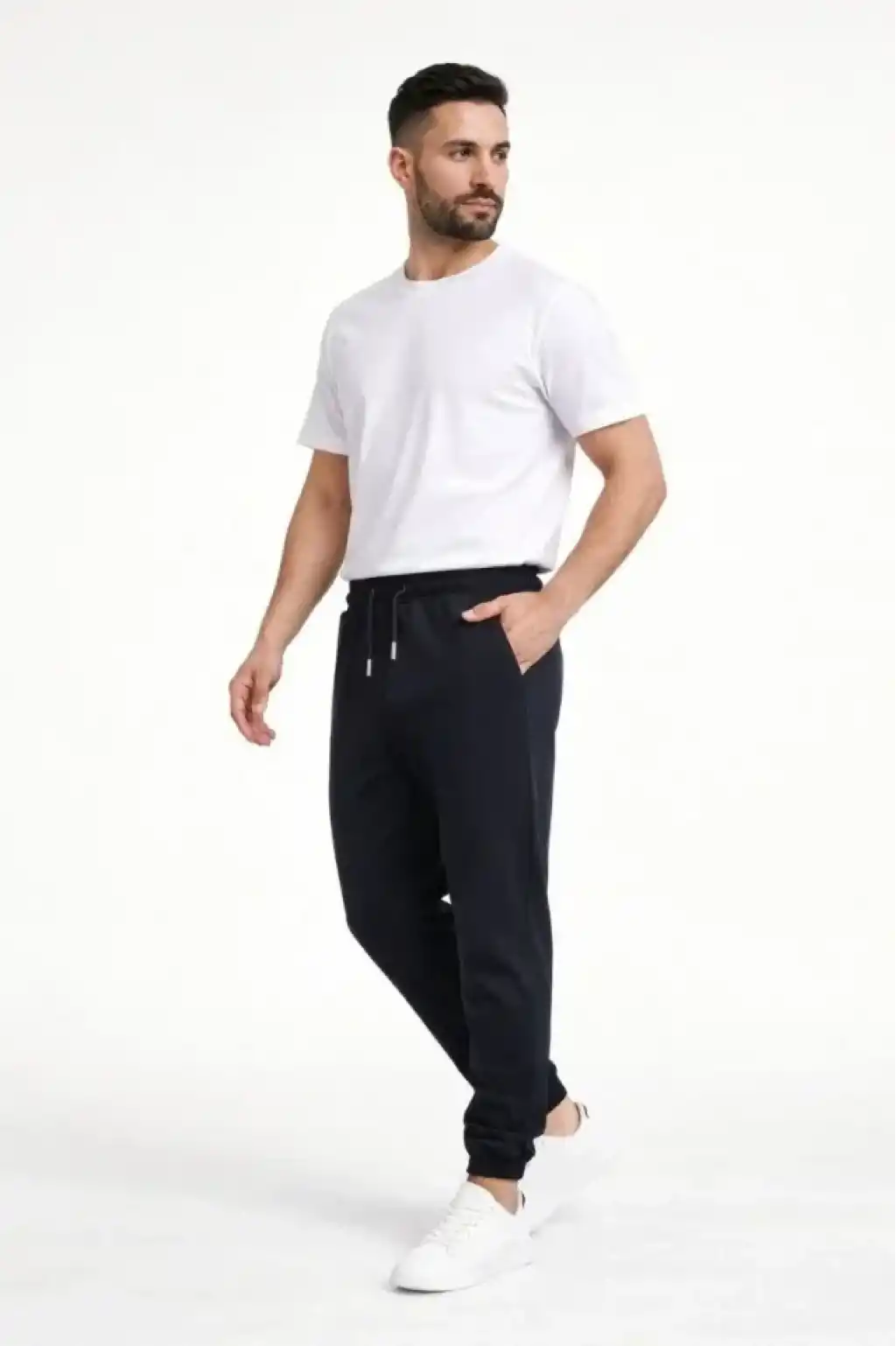 Erkek Jogger Eşofman Altı Rahat Kalıp, Cepli, Lastikli Paça, Günlük Spor Pantolon - Siyah