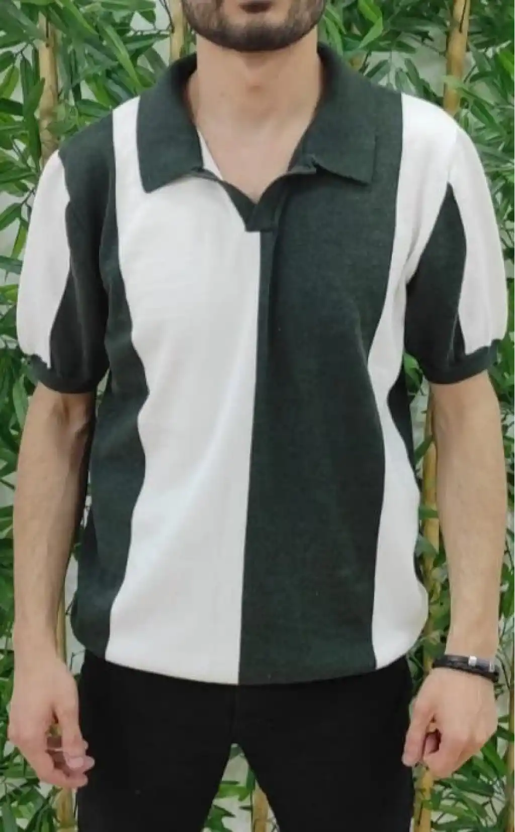 Erkek Düğme Yakalı Jakar Kumaş Kısa Kollu Tişört