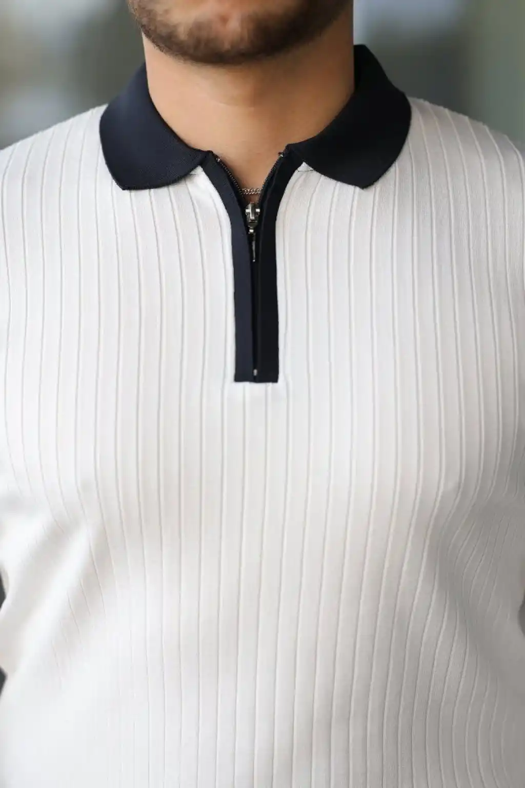 Erkek Fermuarlı Bisiklet Yaka Dokulu Uzun Kollu Triko