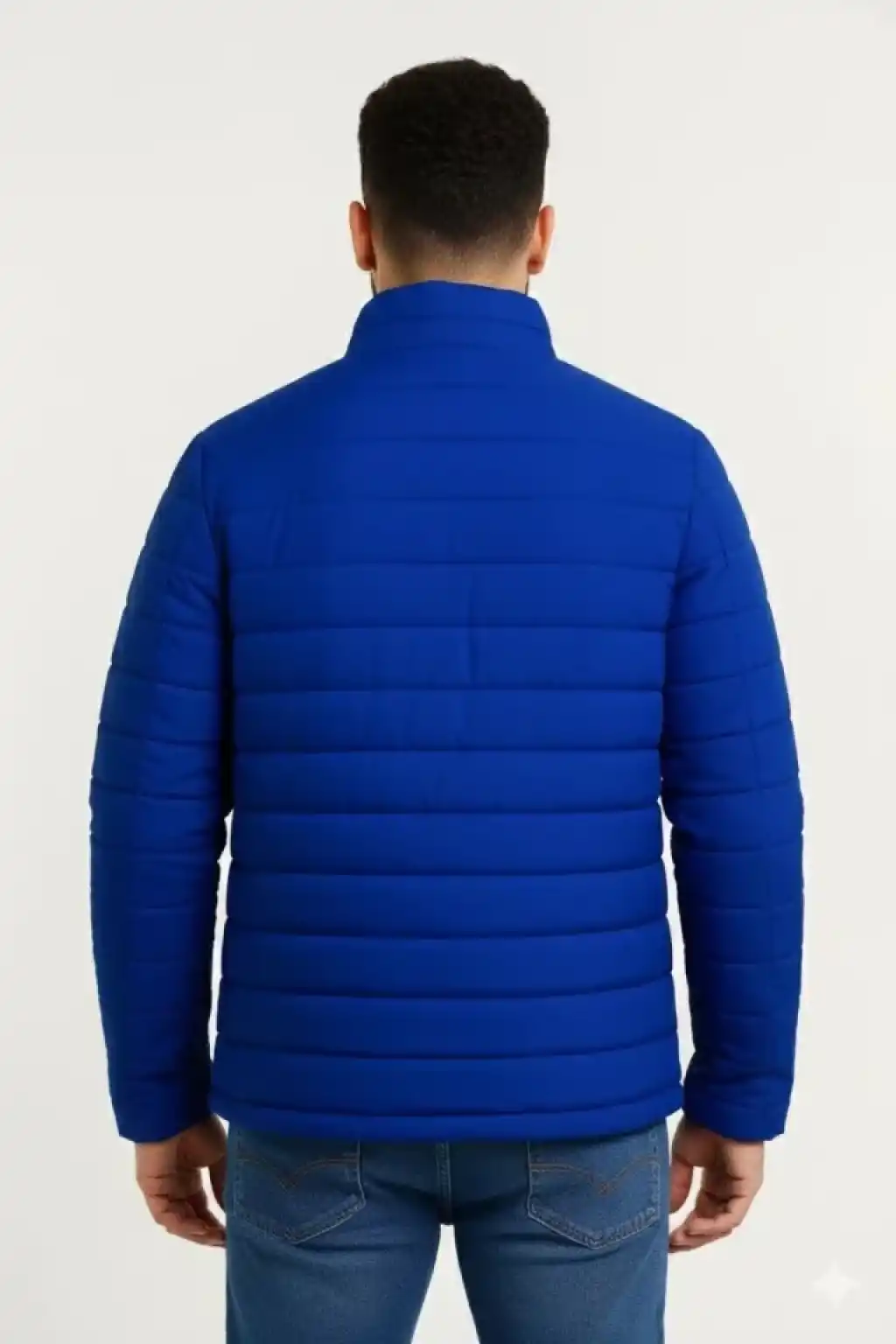 Erkek Mikro Su İtici Kapitone Baskılı Astarlı Fermuarlı Bomber Mont - Saks Mavisi