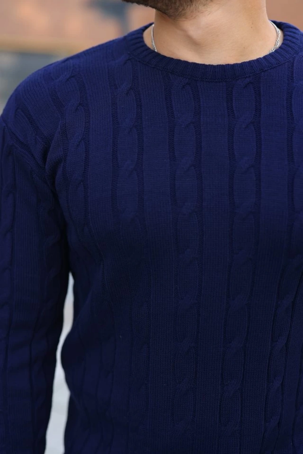 Erkek Bisiklet Yuvarlak Yaka Triko Kazak Pamuklu Kalın Fitilli Dokuma, Regular Fit Uzun Kollu Kışlık Model - Bebe Mavisi