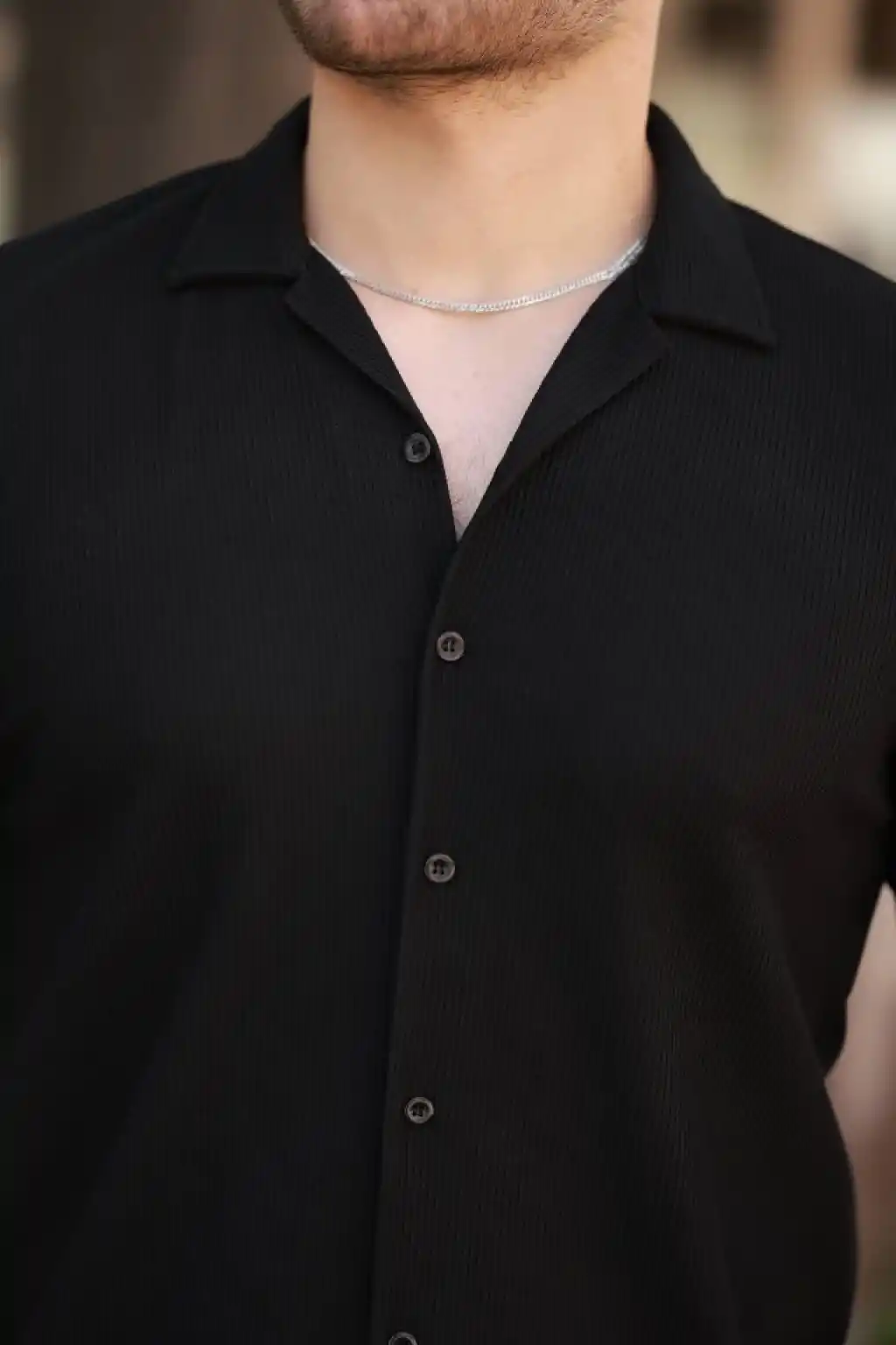 Erkek Waffle Dokuma Açık Yakalı Düğmeli Regular Kalıp 2’li Gömlek Seti - Siyah - Beyaz