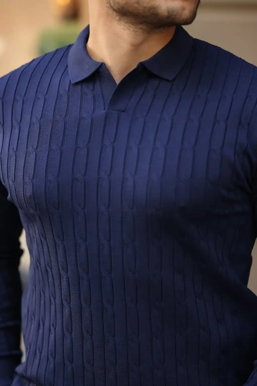 Erkek Pirinç Desenli Uzun Kollu Yakalı Triko