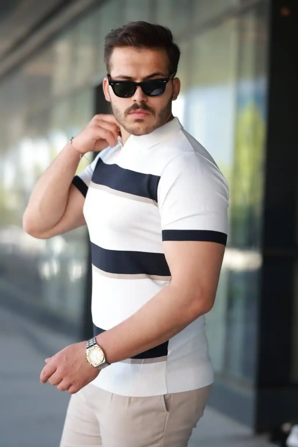 Erkek Düğme Yakalı Jakar Kumaş Kısa Kollu Tişört
