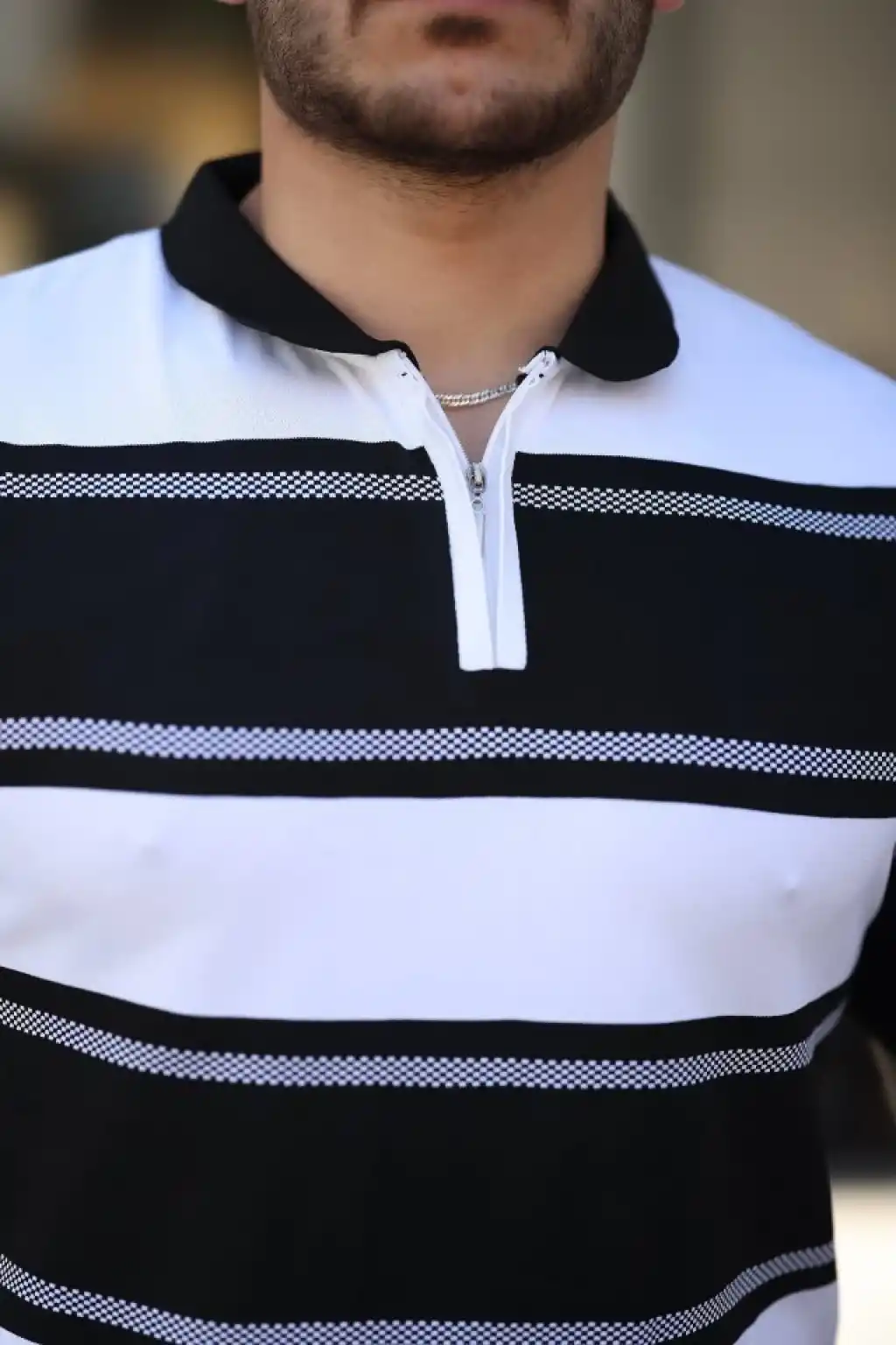 Erkek Yakalı Fermuarlı çift Renk Kısa Kollu T-shirt