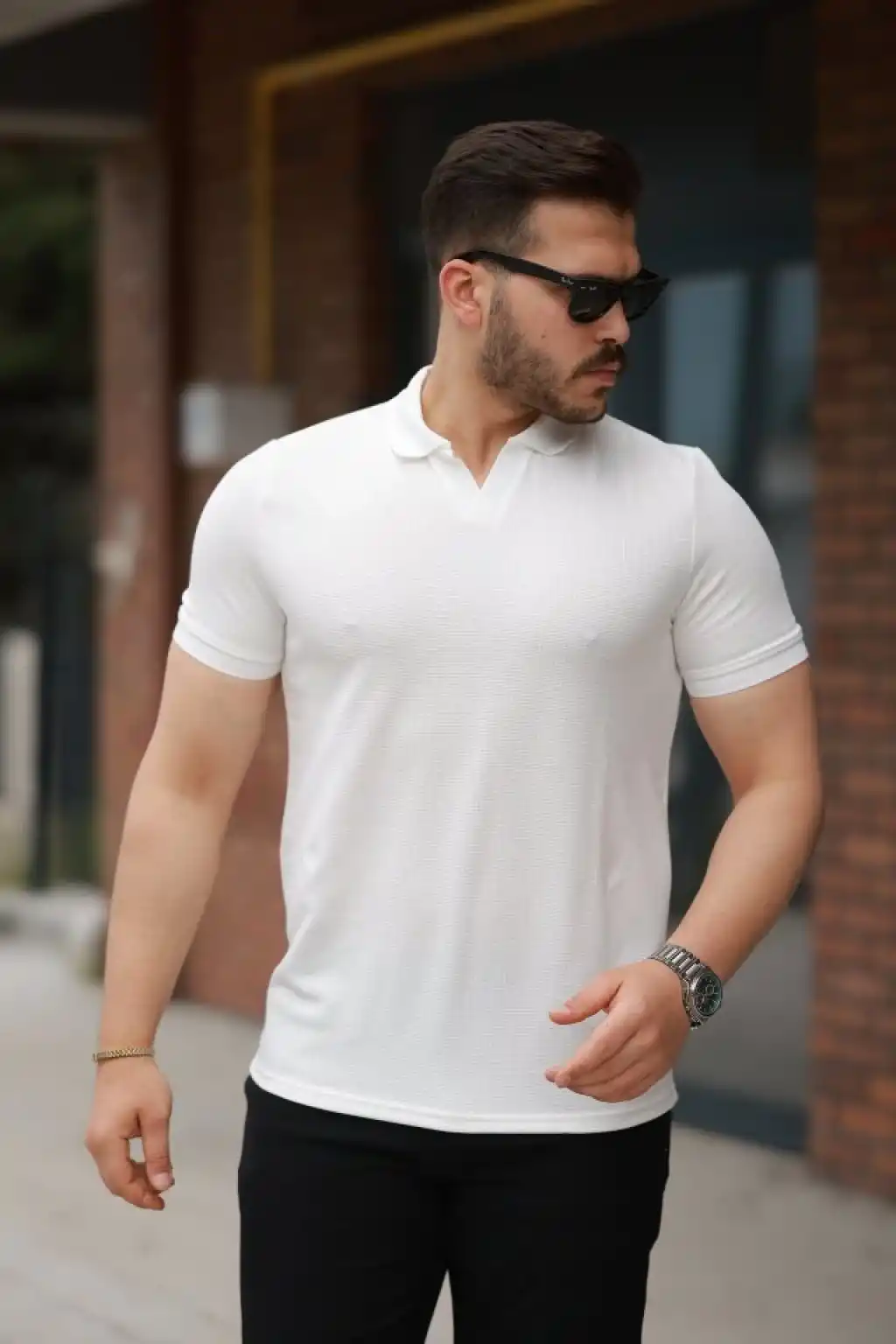 Erkek Düğme Yakalı Jakar Kumaş Kısa Kollu Tişört