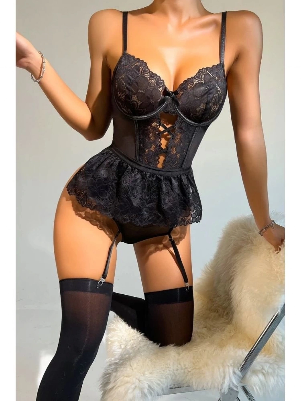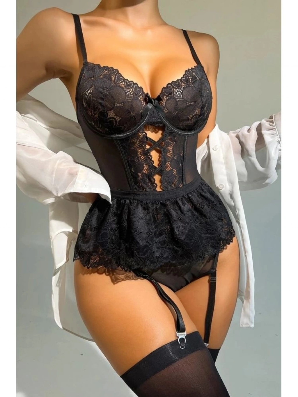 For Dreams 8412 Dantel Büstiyer ve Jartiyer Takım