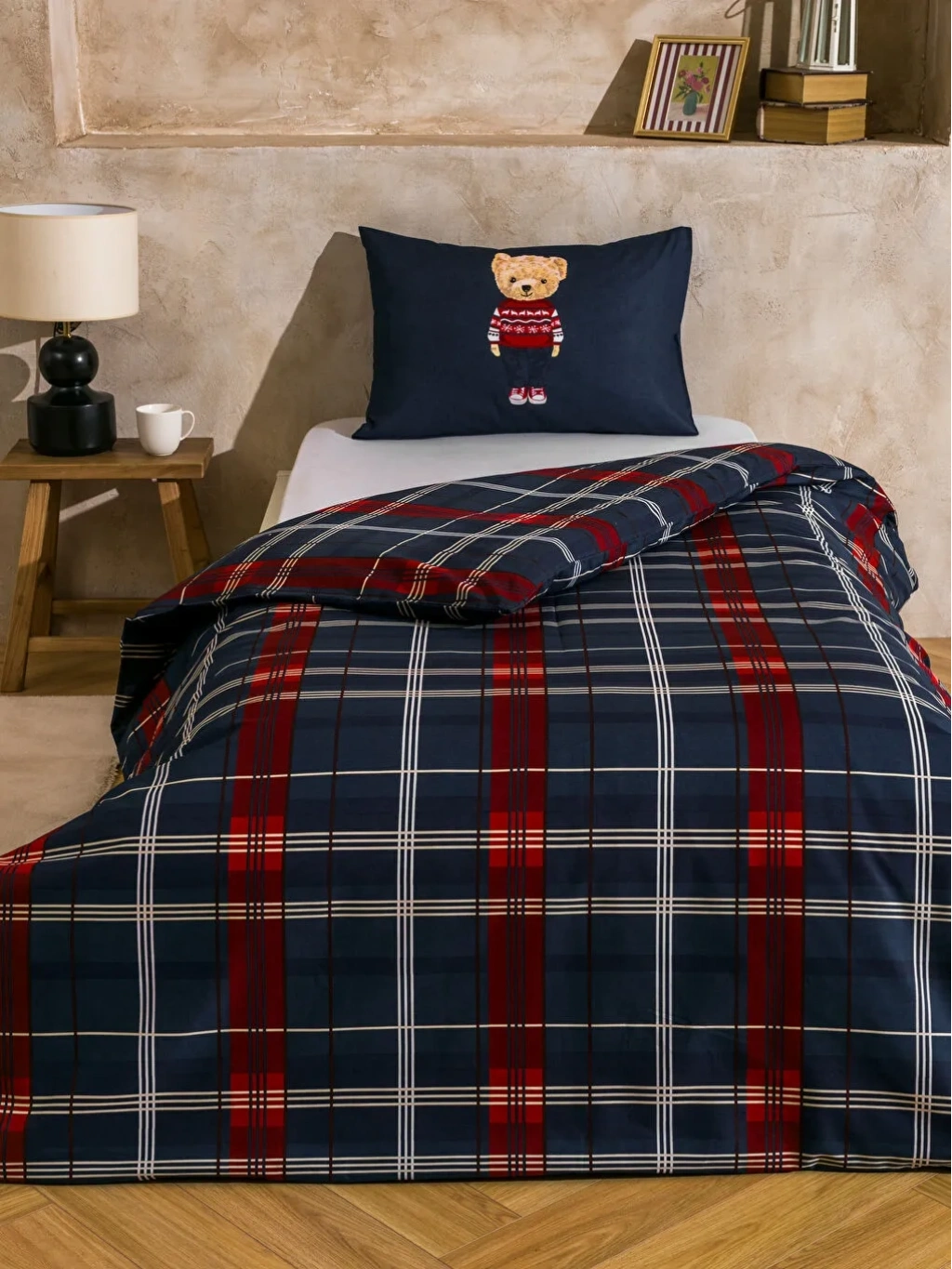 HOME Ayı Teddy Baskılı %100 Pamuklu Tek Kişilik Nevresim Seti 160x220 cm