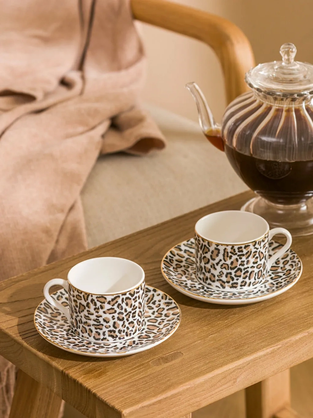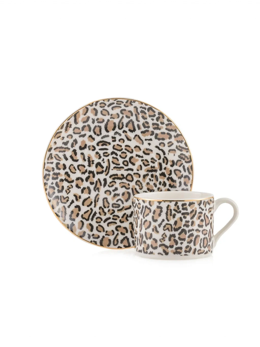 HOME Leopar Desenli 2 Kişilik Porselen Kahve Fincan Takımı 124 Ml