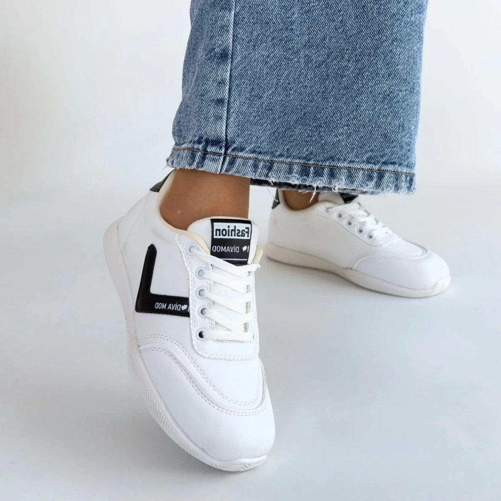 Jowen Beyaz Cilt Siyah Detaylı Bağcıklı Spor Ayakkabı