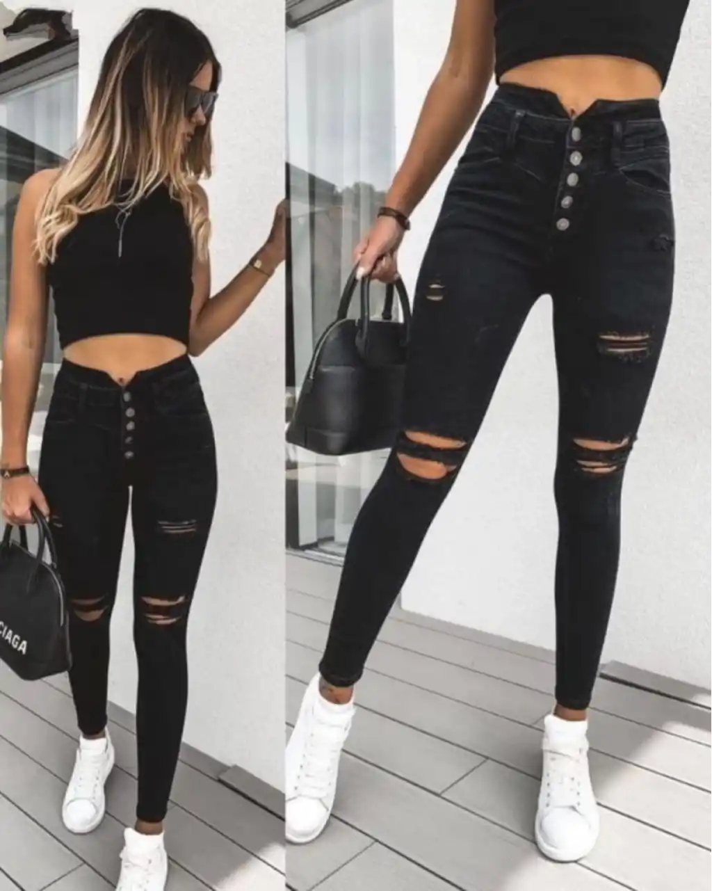Kadın 5 Düğmeli V Detay Bel Yırtık Kot