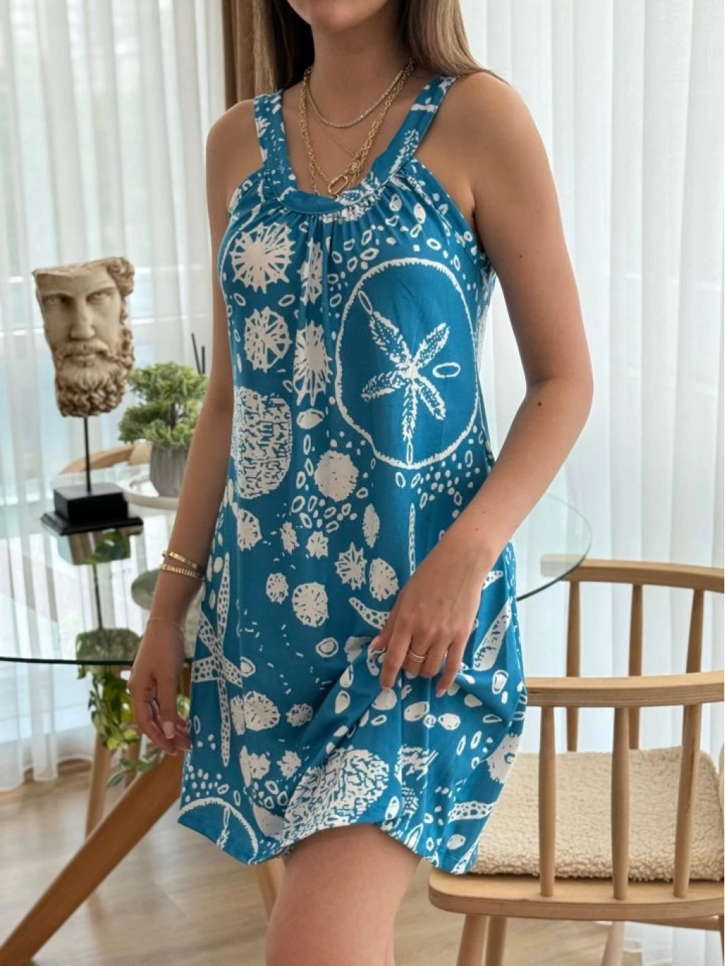 Kadın Askılı Deniz Yıldızı Desenli Süprem Elbise
