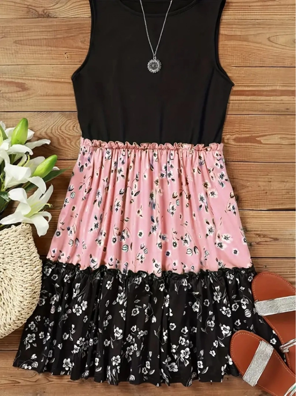 Kadın Askılı Yuvarlak Yaka çiçek Baskılı Salaş Süprem Elbise