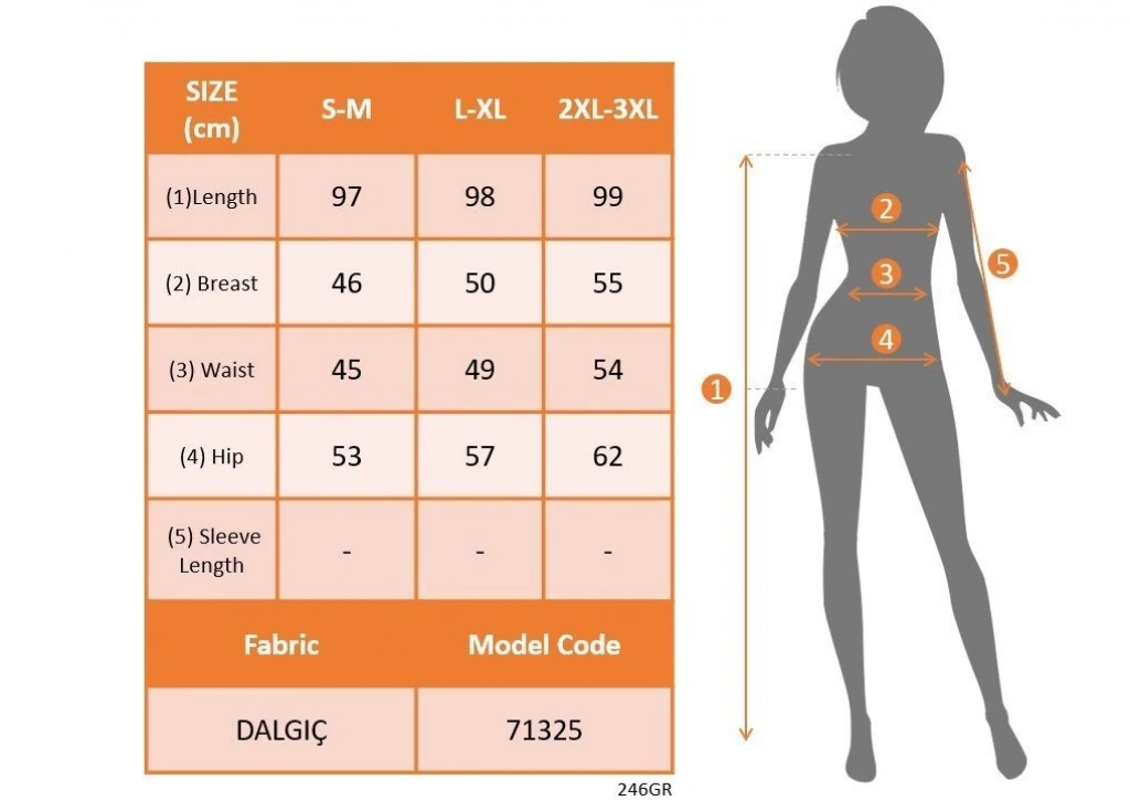 Modelin Ölçüleri: Boy:165, Kg:55, Göğüs:90, Bel:72, Kalça: 100