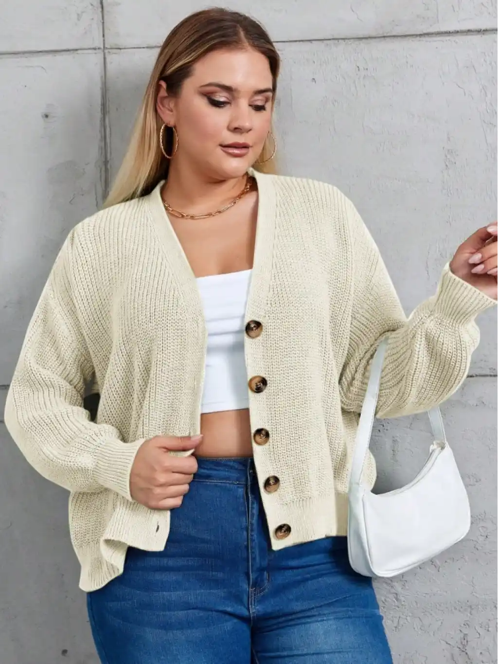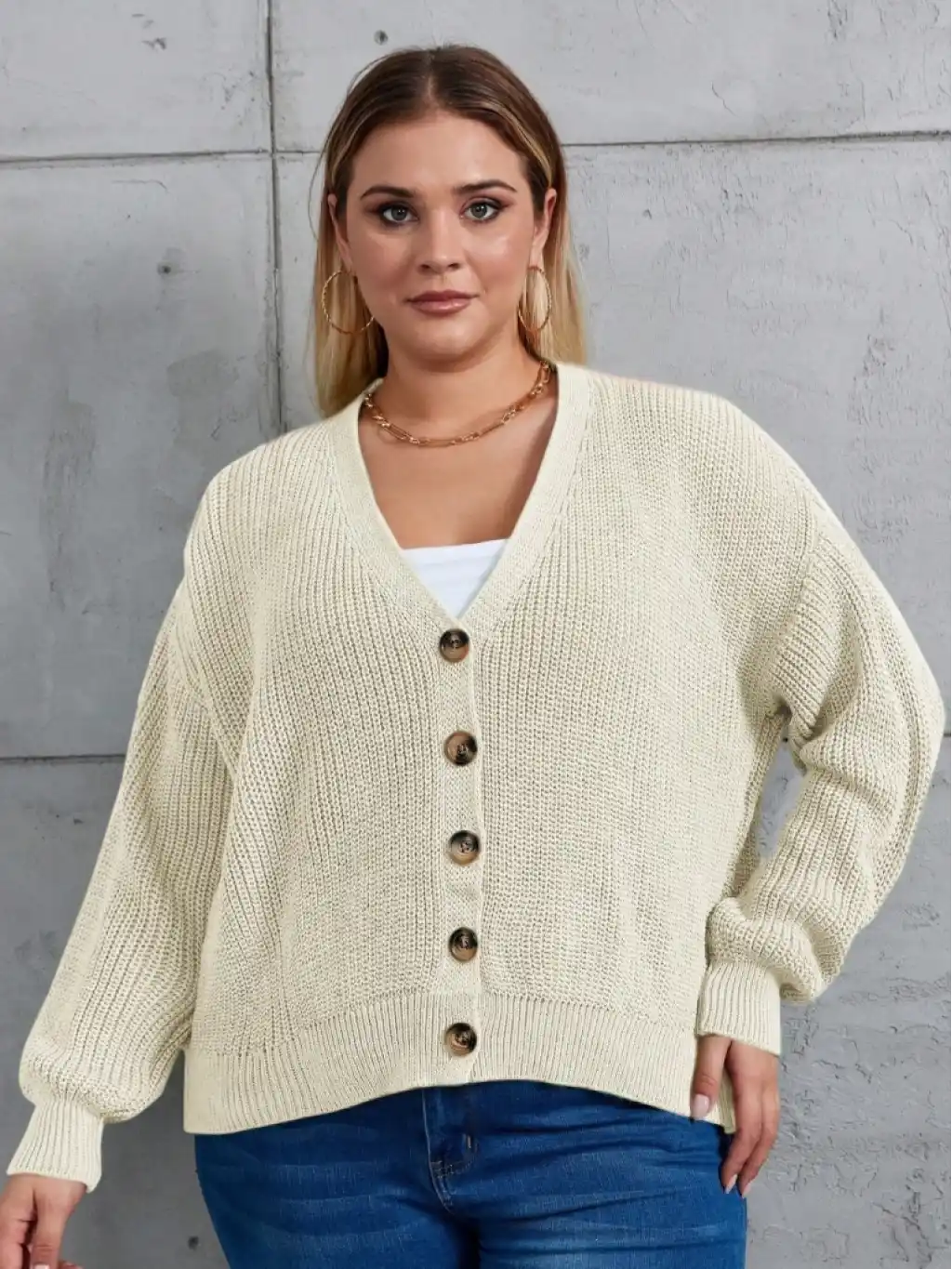 Kadın Beş Düğme Büyük Beden Triko Hırka