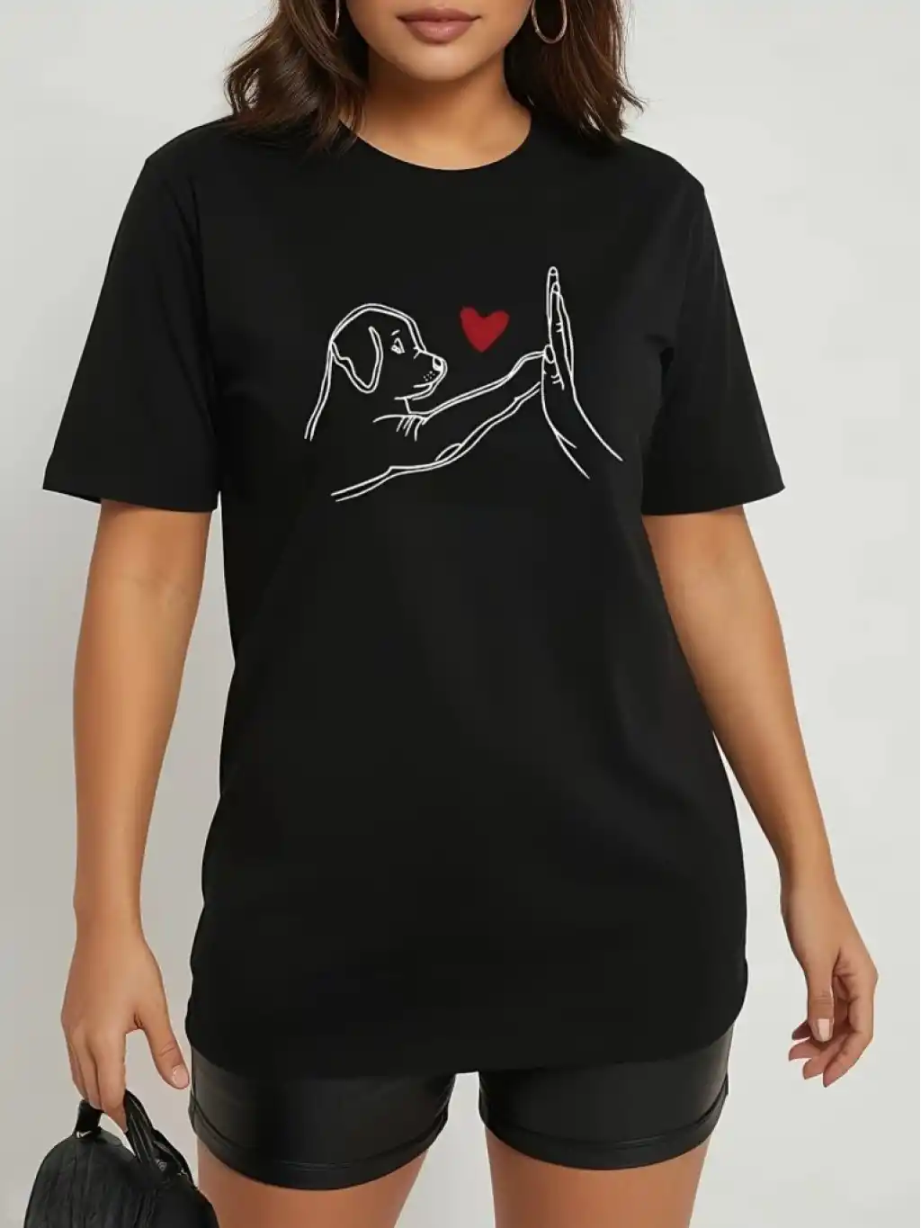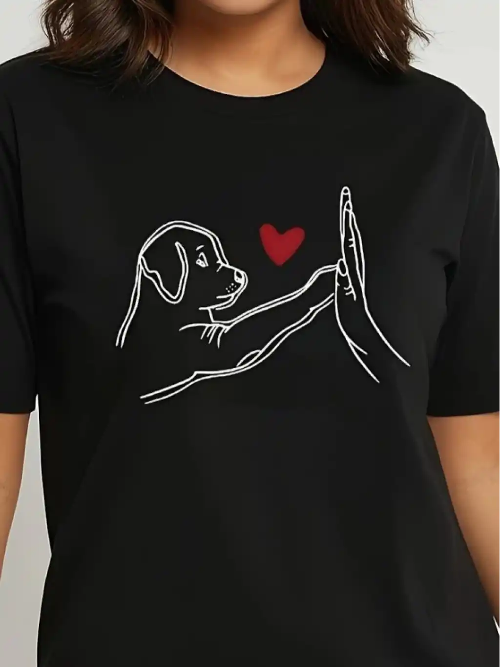 Kadın Kısa Kollu Bisiklet Yaka Köpek Baskılı Viskon Bluz