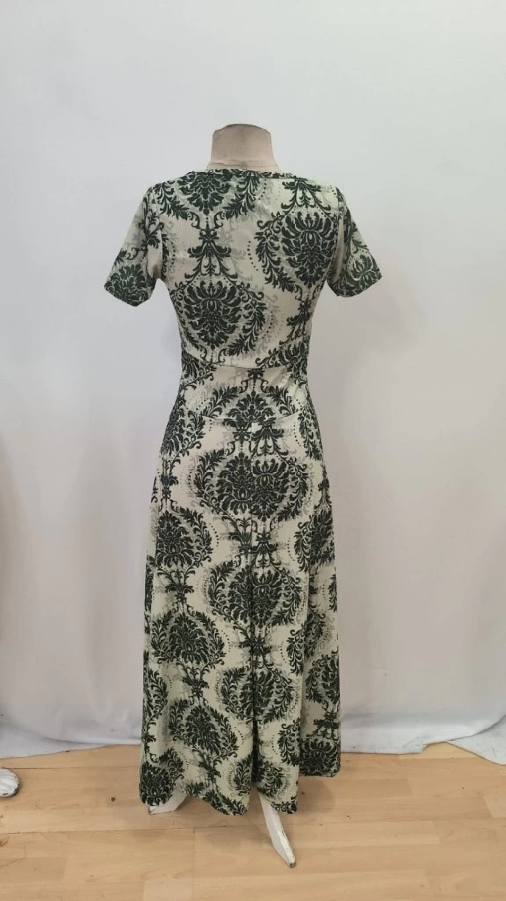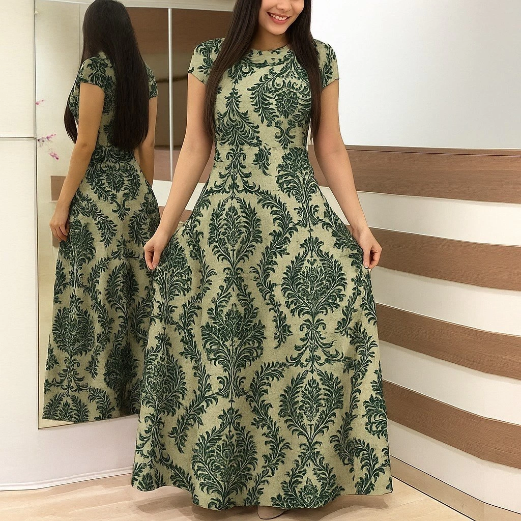 Kadın Kısa Kollu Bisiklet Yaka Puantiyeli Maksi örme Krep Elbise