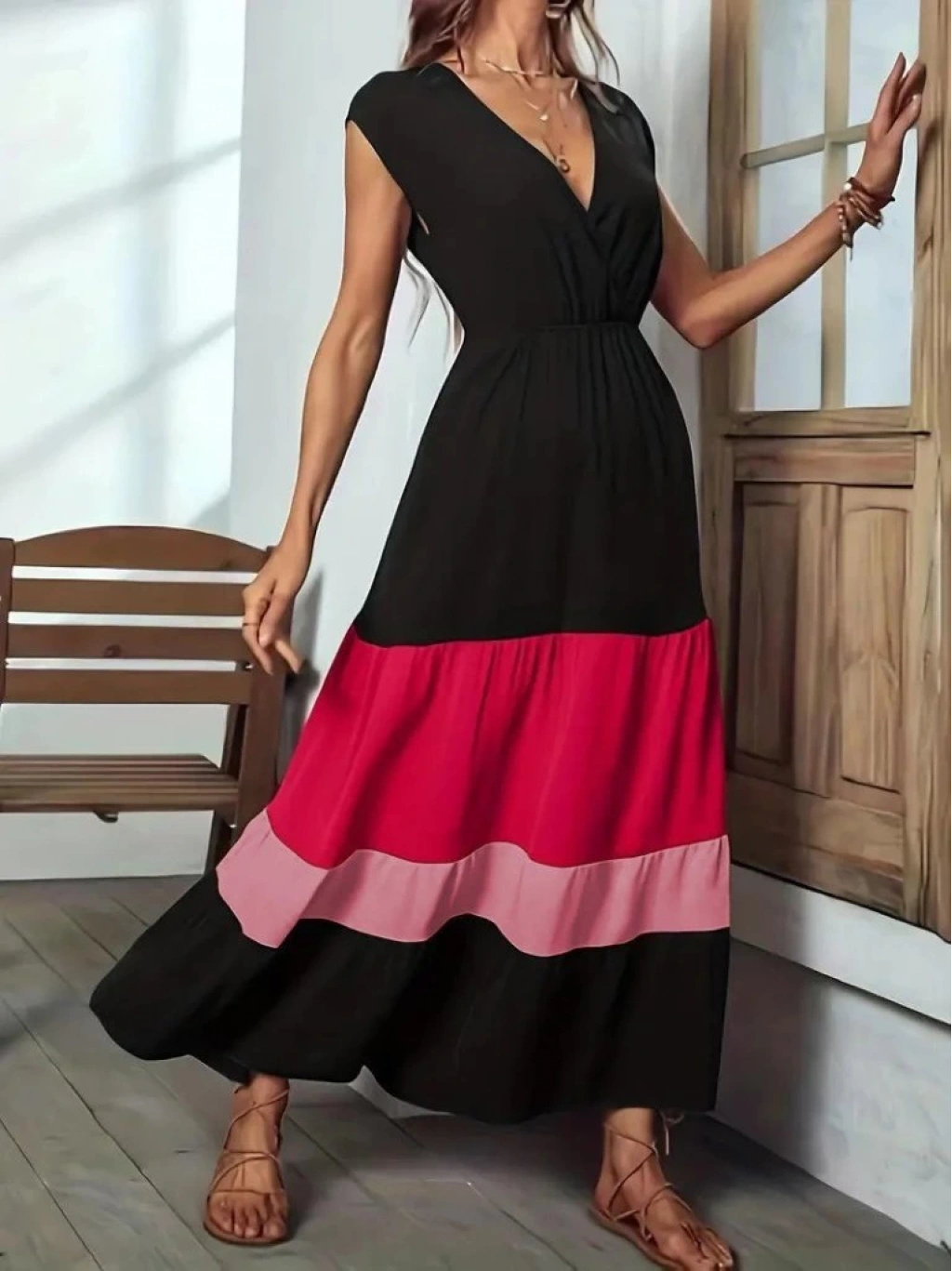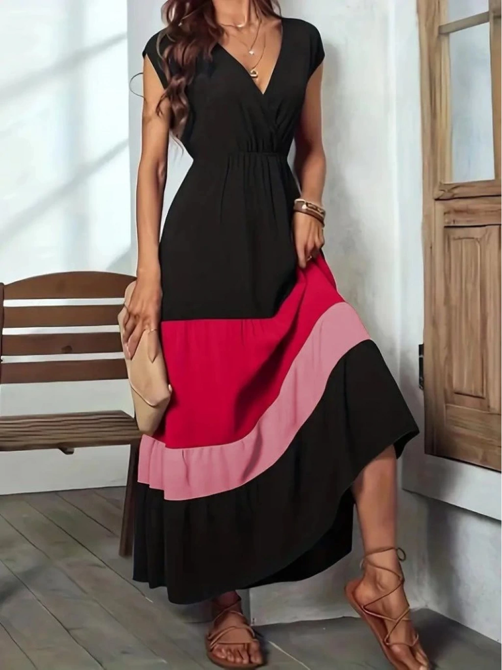 Kadın Kısa Kollu Kruvaze Yakalı çok Renkli Aerobin Elbise