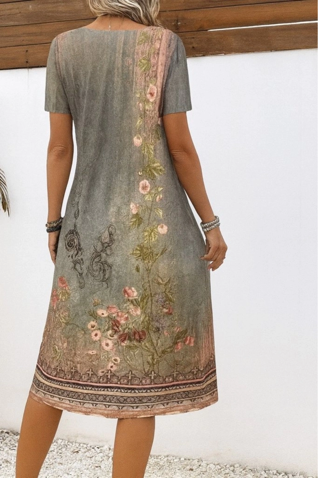 Kadın Kısa Kollu V Yakalı Desenli Süprem Elbise