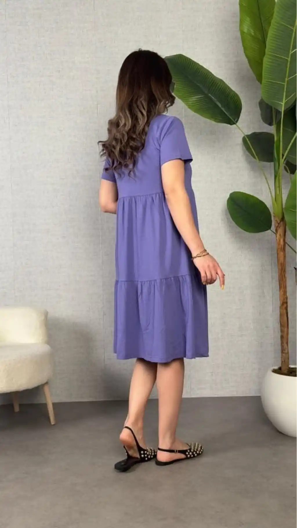 Kadın Kısa Kollu V Yakalı Viskon Elbise