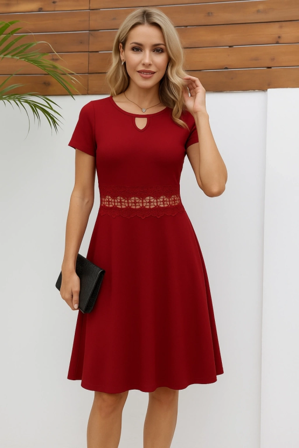 Kadın Kısa Kollu Yuvarlak Yaka Damla Detaylı Janjan Elbise