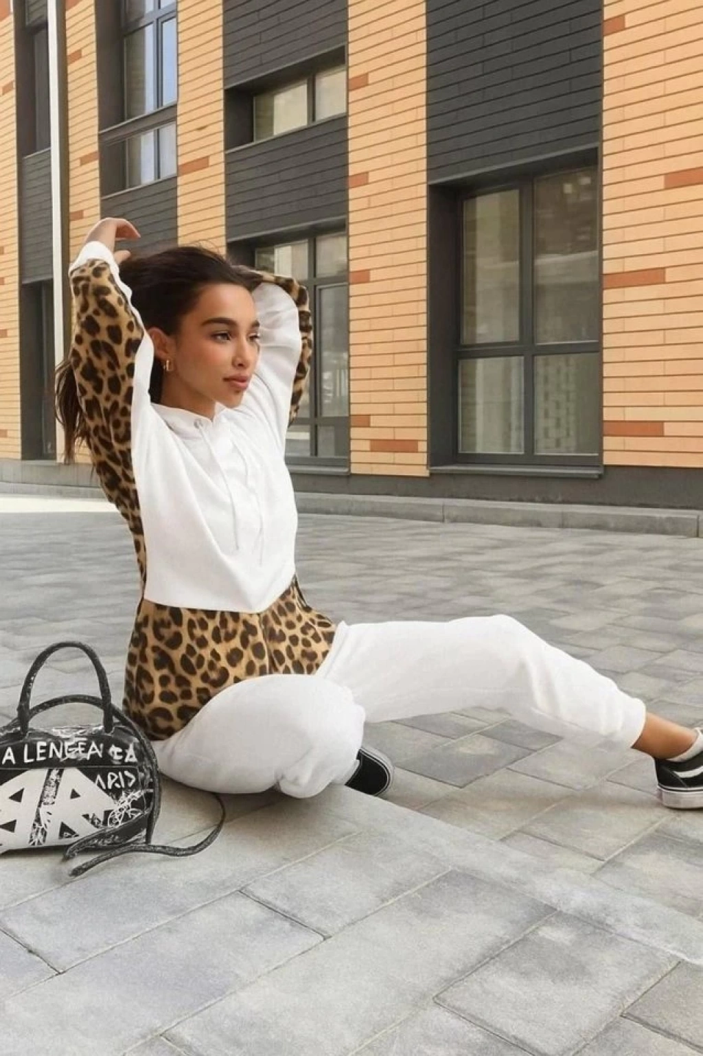 Kadın Leopar Ve Gömlek Detay Sweat Ve Pantolon Kili Takım