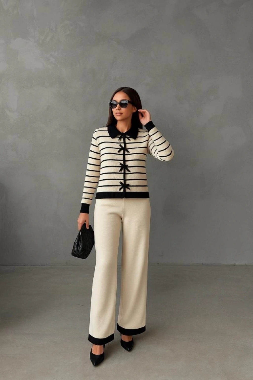 Kadın şerit Detay Bol Paça Pantolonlu ıkılı Takım