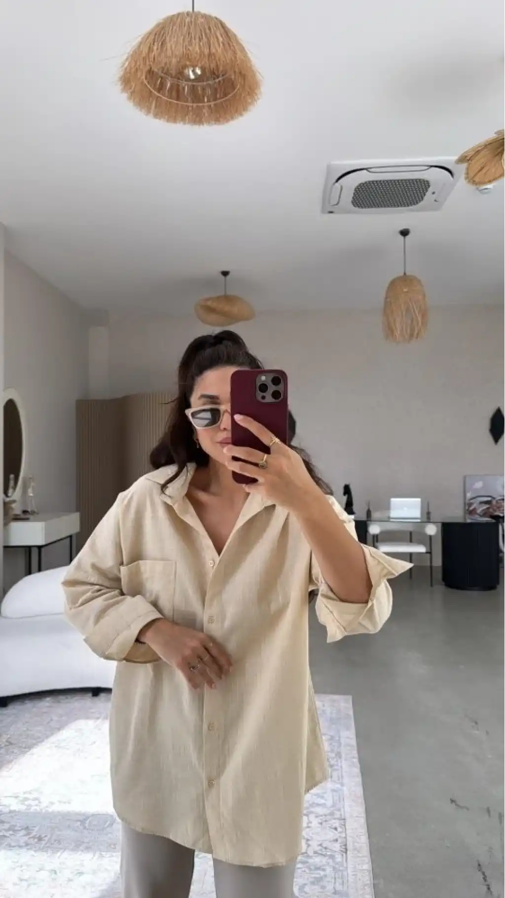 Kadın Tek Cepli Over Size Ketem Gömlek
