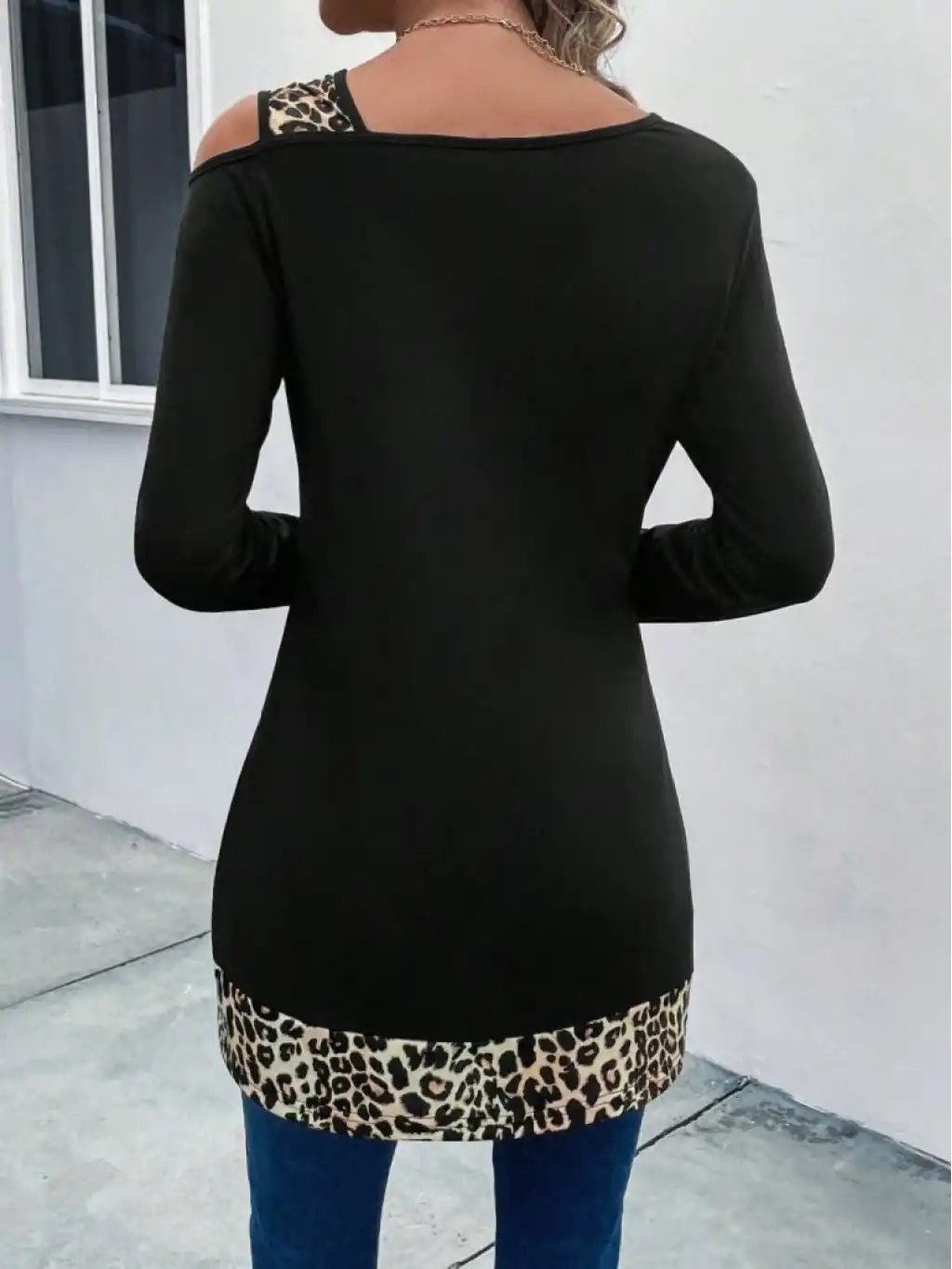 Kadın Tek O Uzdan Açık Askılı Uzun Kollu Leopar Detaylı Viskon Bluz