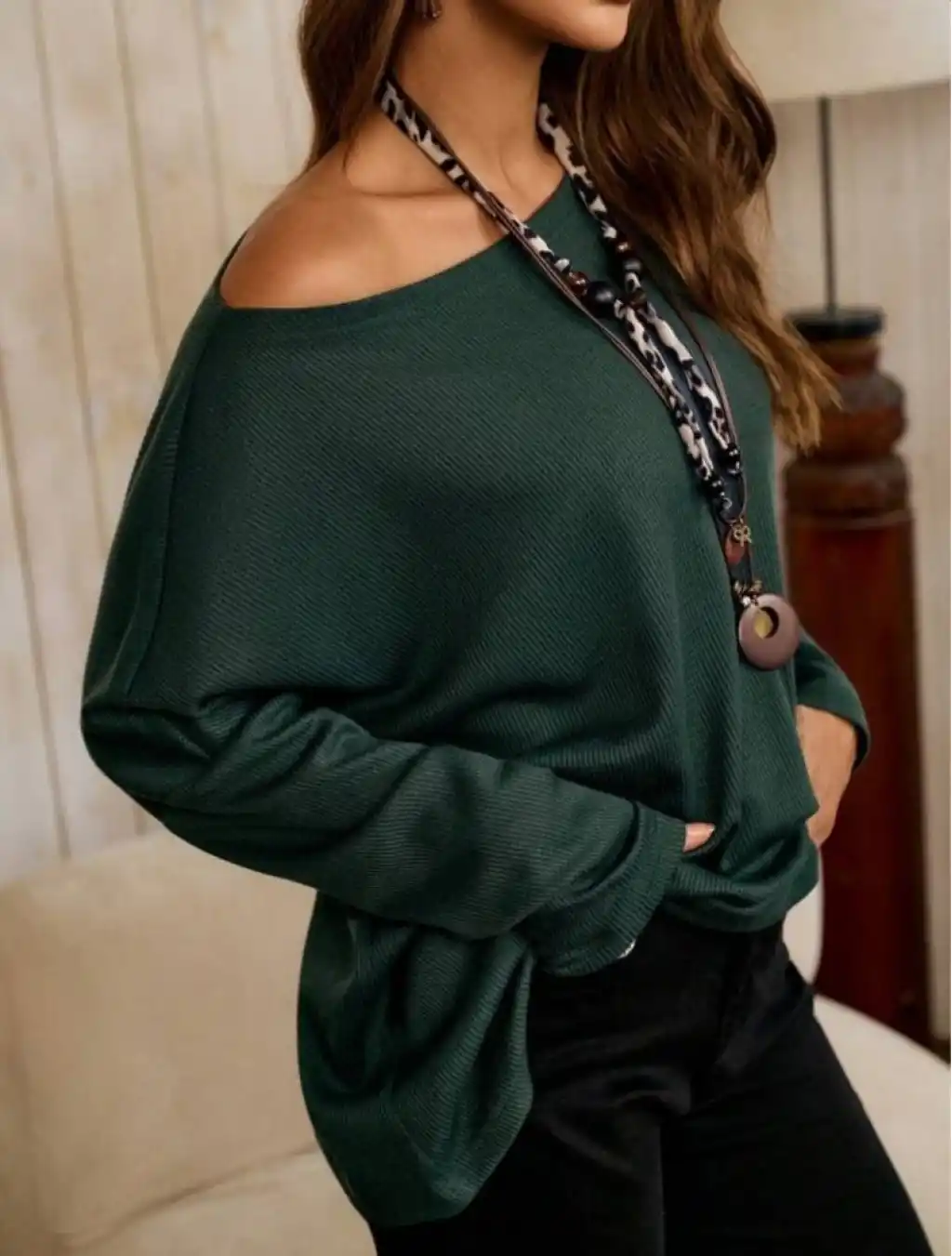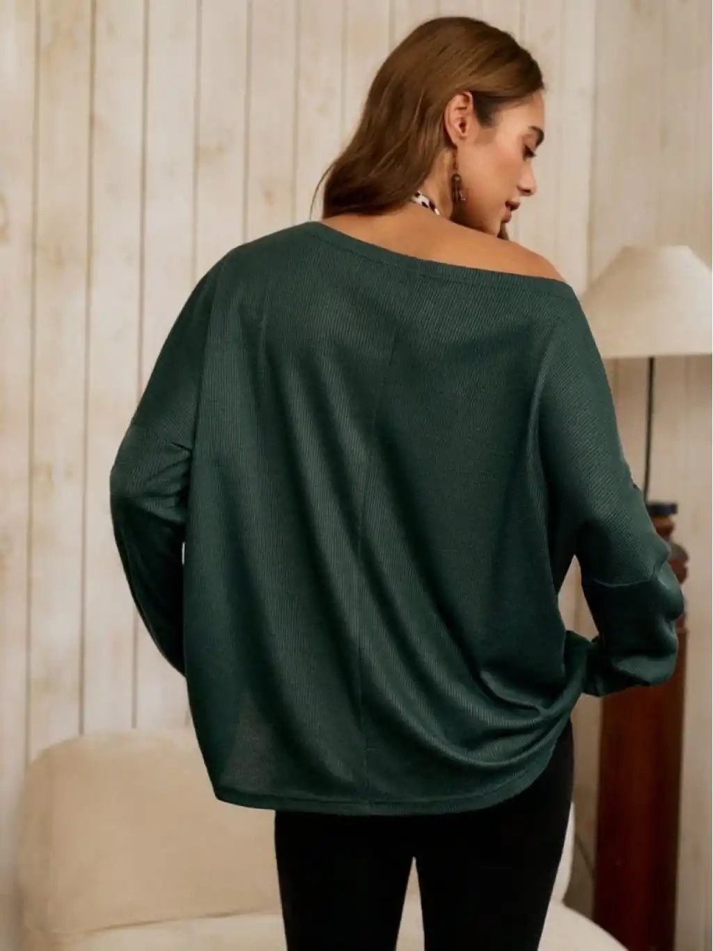 Kadın Tek Omuzdan Açık Yarasa Kollu Waffle Bluz