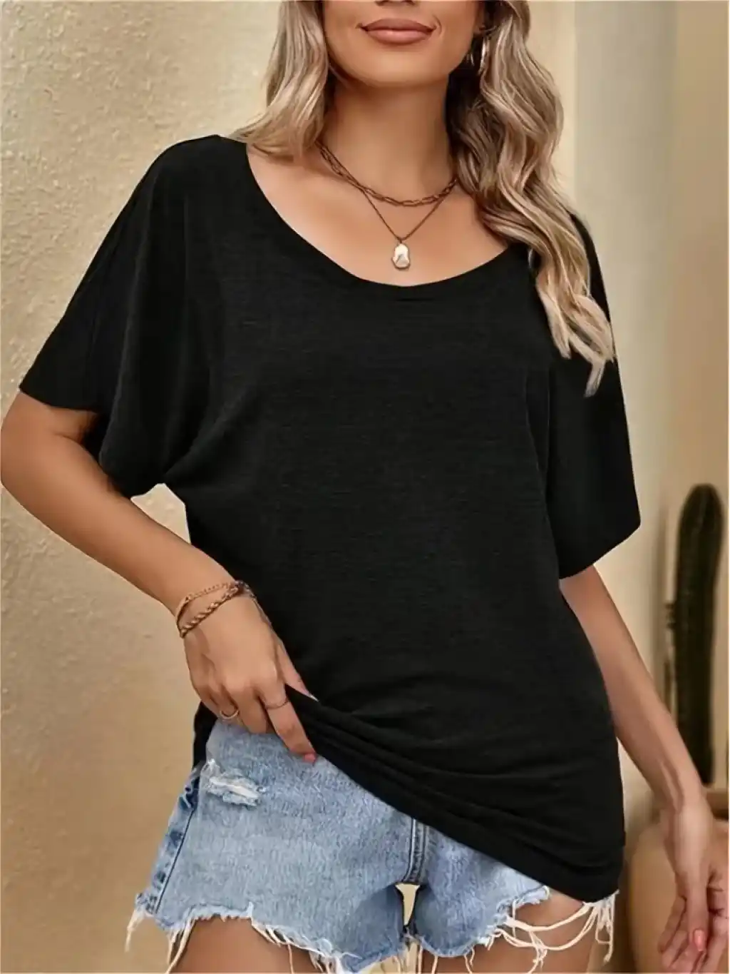 Kadın Tek Omuzu Açık Kısa Kollu Salaş Viskon Bluz